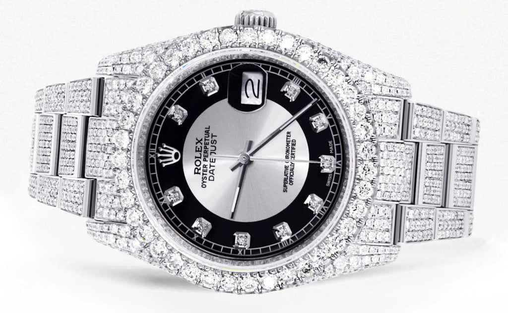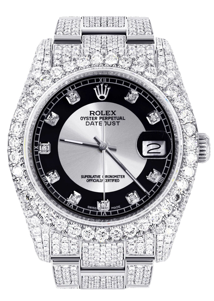 Iced Out Rolex Datejust 36 MM | Stainless Steel | 16.5 Carats of Diamonds | Tuxedo Diamond Dial | Oyster Band | Model 116200