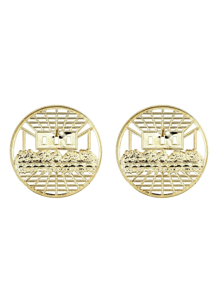 10K Yellow Gold Last Supper Earrings, The Width Of These Earrings Is Approximately 3/4 Inches. These Studs Come In A High Polish And Can Be Worn For Any Occasion.