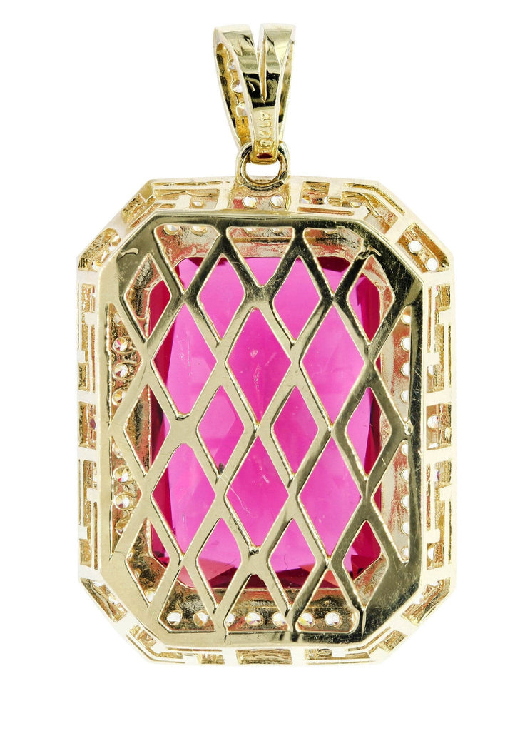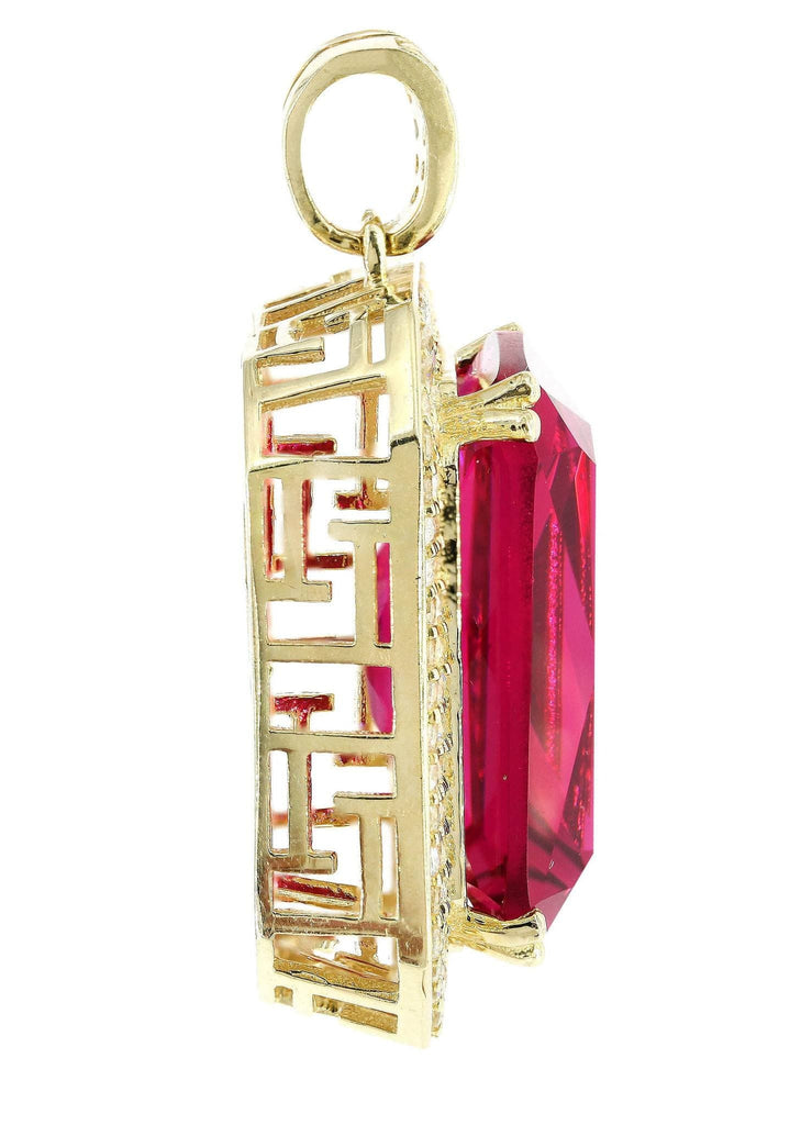 Medium Ruby and Cz 10K Yellow Gold Pendant. The Pendant Weighs Approximately 14.3 Grams With An Average Length Of 38 Mm And Average Width Of 23 Mm