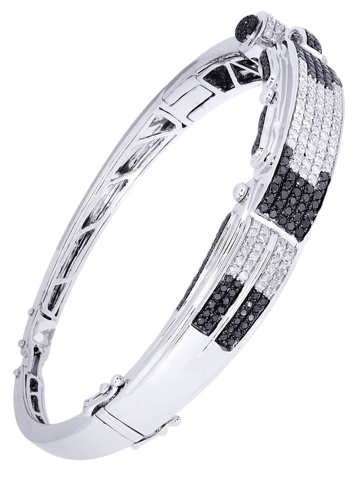 14K White Gold Mens Diamond Bangle With Approximately 2.89 Carats Of Diamonds And 35.02 Grams .This Hand Made Bracelet Comes In 8.5 Inches But Can Be Adjusted To Any Size Upon Request.