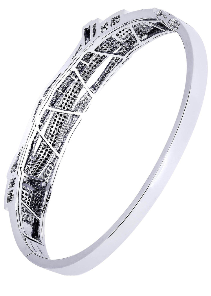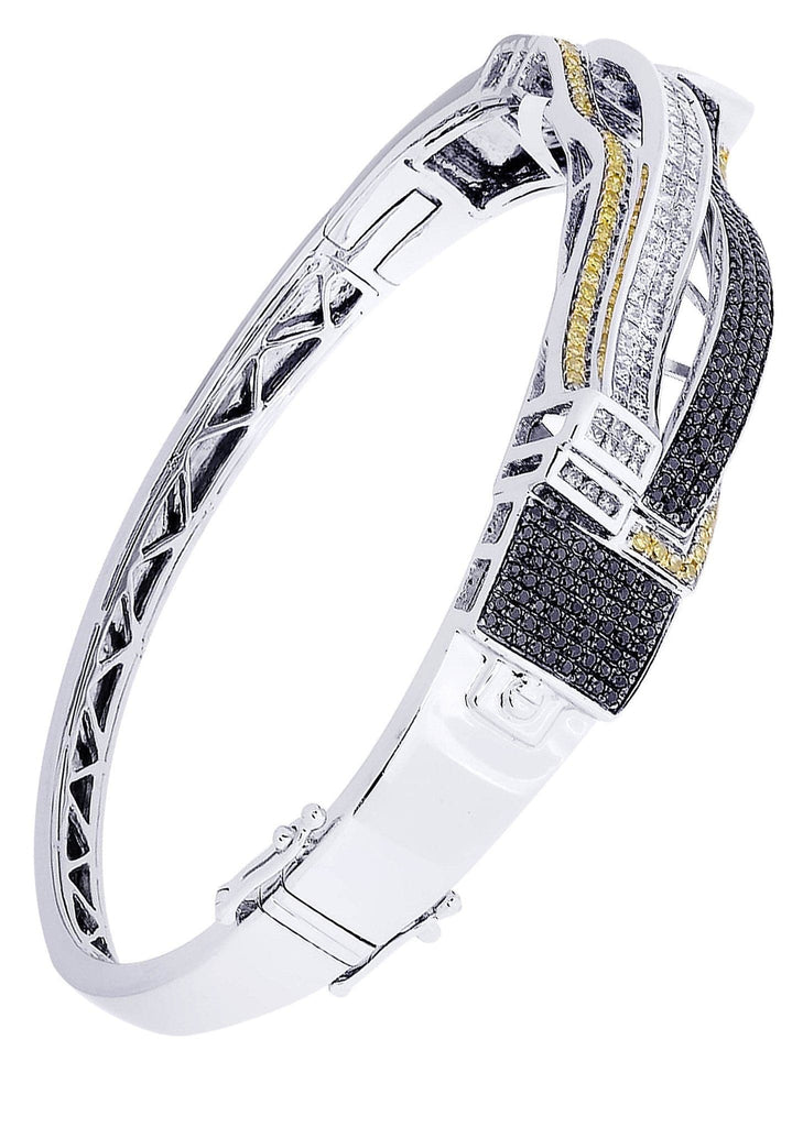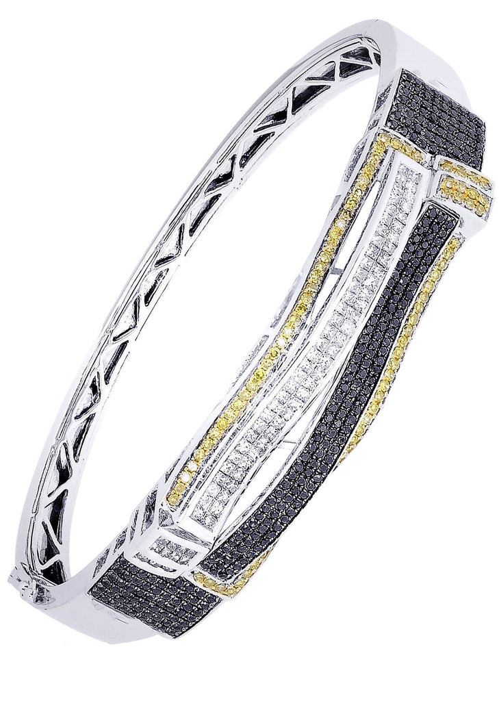 14K White Gold Mens Diamond Bangle With Approximately 2.97 Carats Of Diamonds And 33.4 Grams .This Hand Made Bracelet Comes In 8.5 Inches But Can Be Adjusted To Any Size Upon Request.