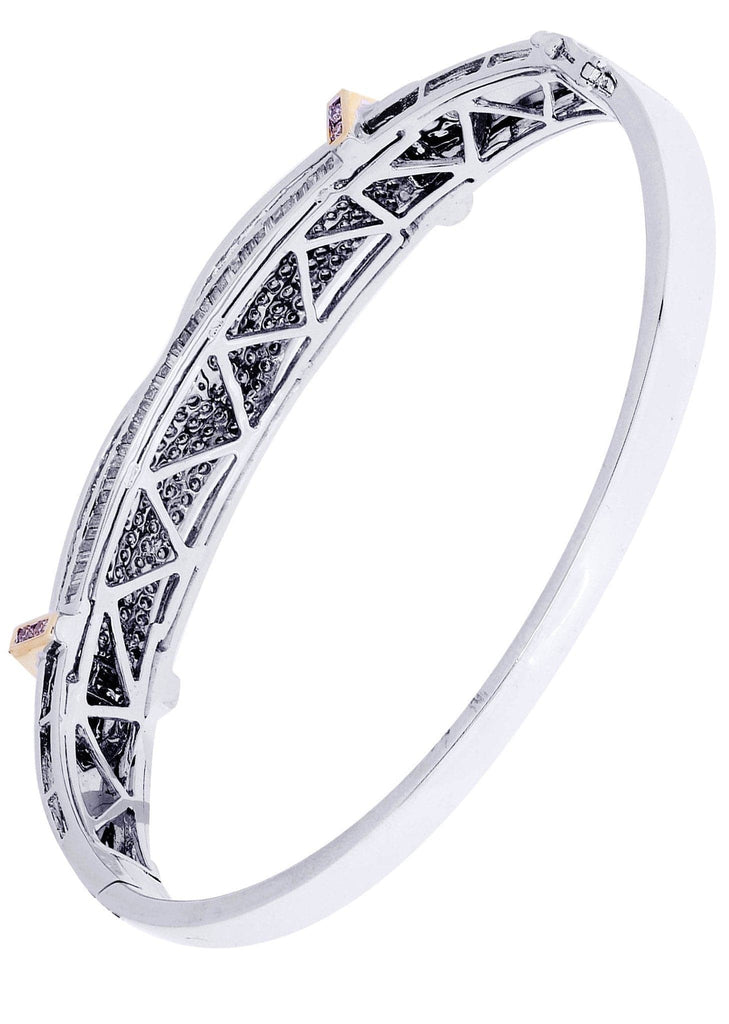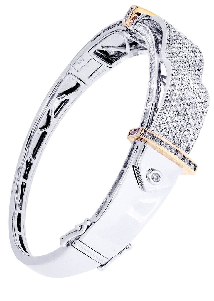 14K White Gold Mens Diamond Bangle With Approximately 3.45 Carats Of Diamonds And 30.81 Grams .This Hand Made Bracelet Comes In 8.5 Inches But Can Be Adjusted To Any Size Upon Request.