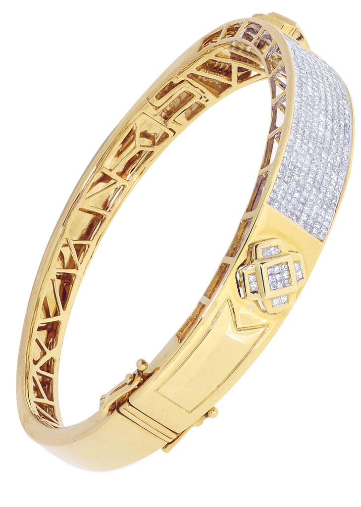 14K Yellow Gold Mens Diamond Bangle With Approximately 3.71 Carats Of Diamonds And 35.66 Grams .This Hand Made Bracelet Comes In 8.5 Inches But Can Be Adjusted To Any Size Upon Request.