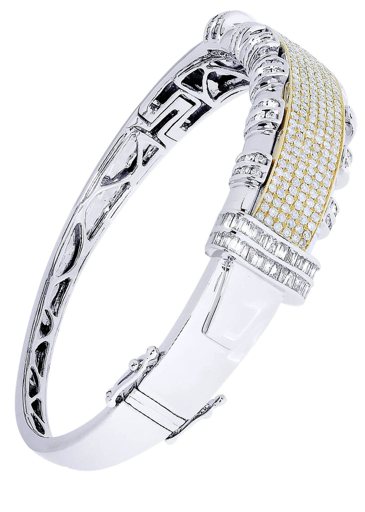 14K White Gold Mens Diamond Bangle With Approximately 4.48 Carats Of Diamonds And 35.3 Grams .This Hand Made Bracelet Comes In 8.5 Inches But Can Be Adjusted To Any Size Upon Request.