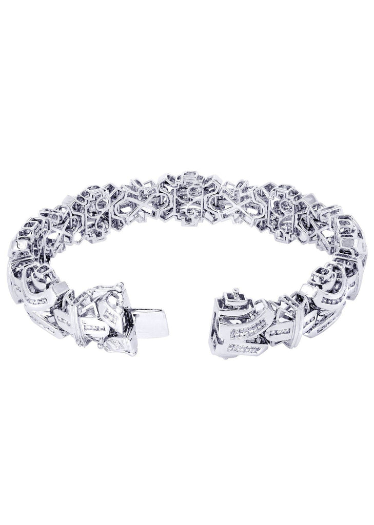 14K White Gold Mens Diamond Bracelet With Approximately 4.63 Carats Of Diamonds And 52.72 Grams .This Hand Made Bracelet Comes In 8.5 Inches But Can Be Adjusted To Any Size Upon Request.