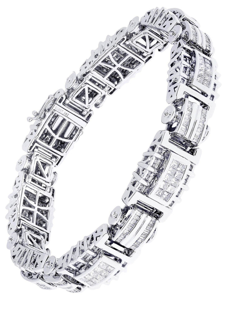14K White Gold Mens Diamond Bracelet With Approximately 5.66 Carats Of Diamonds And 54.41 Grams .This Hand Made Bracelet Comes In 8.5 Inches But Can Be Adjusted To Any Size Upon Request.