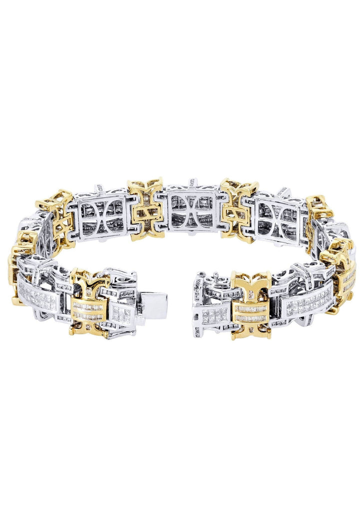14K Yellow Gold Mens Diamond Bracelet With Approximately 6.77 Carats Of Diamonds And 65.95 Grams .This Hand Made Bracelet Comes In 8.5 Inches But Can Be Adjusted To Any Size Upon Request.