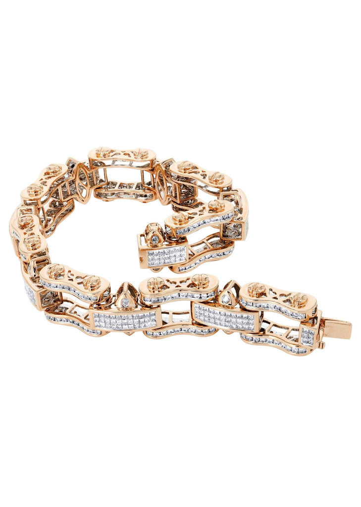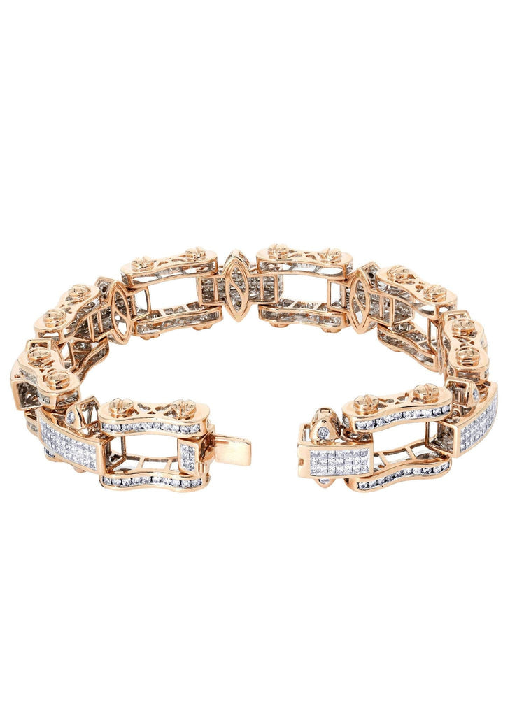 14K Rose Gold Mens Diamond Bracelet With Approximately 8.54 Carats Of Diamonds And 65.73 Grams .This Hand Made Bracelet Comes In 8.5 Inches But Can Be Adjusted To Any Size Upon Request.