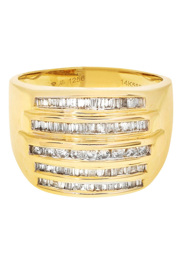 14K Yellow Gold Mens Baguette Diamond Ring With Approximately 0.2 Carats Of Diamond And 10.91 Grams .This Hand Made Ring Comes In Size 7 But Can Be Adjusted To Any Size.