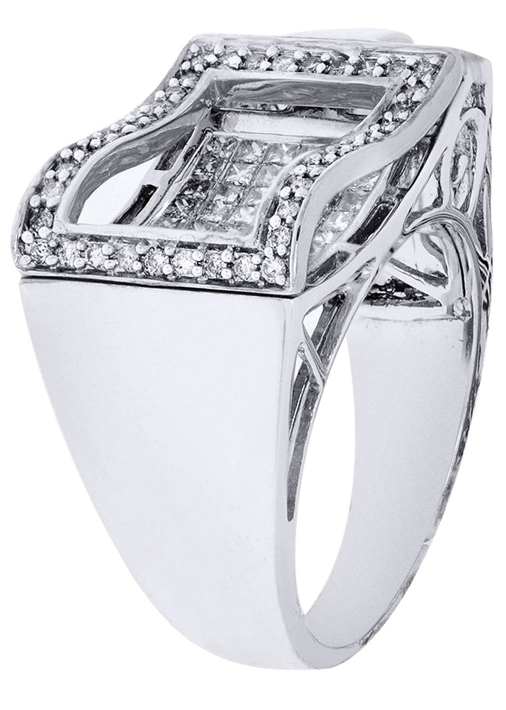 14K White Gold Mens Diamond Ring With Approximately 1.32 Carats Of Diamond And 14.04 Grams .This Hand Made Ring Comes In Size 7 But Can Be Adjusted To Any Size.