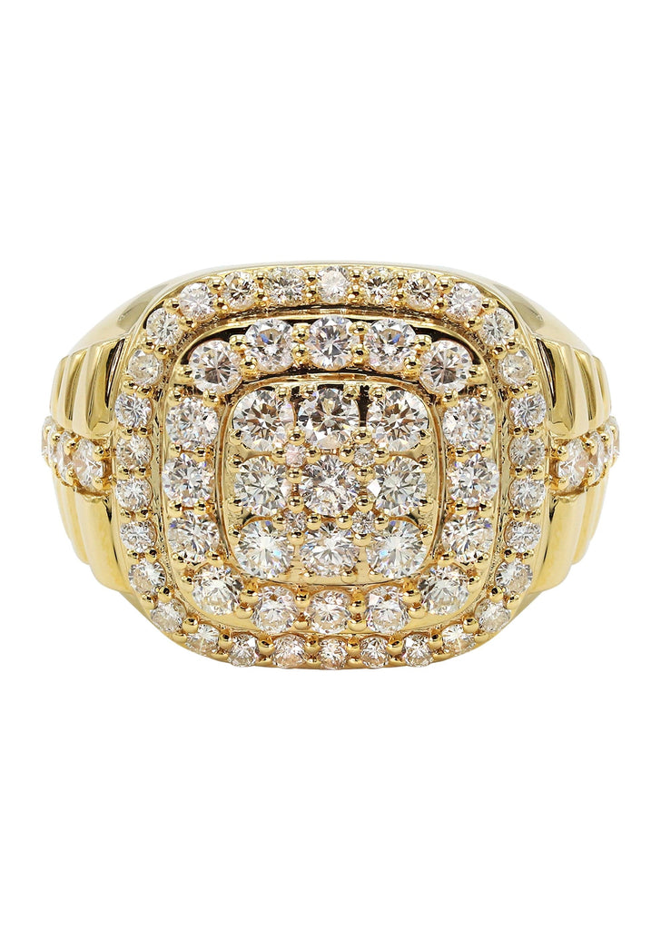 14K Yellow Gold Mens Diamond Ring With Approximately 3.26 Carats Of Diamond And 14.27 Grams. This Hand Made Ring Comes In Size 7 But Can Be Adjusted To Any Size.
