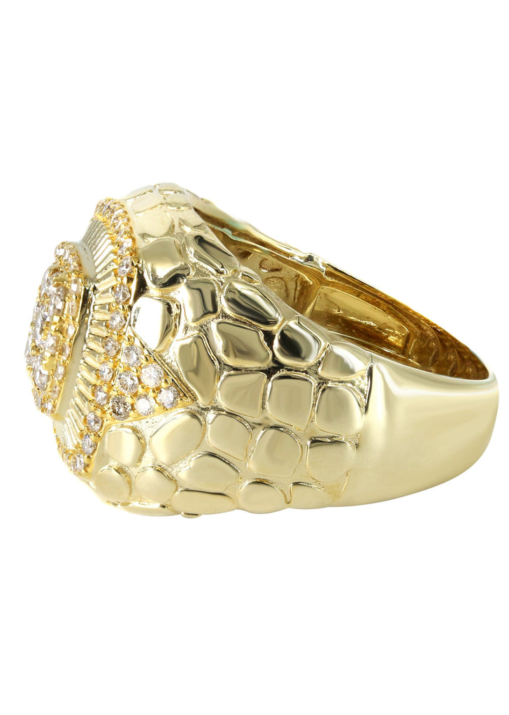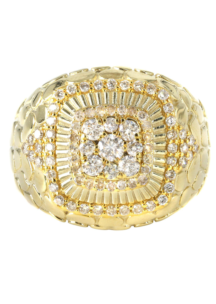 10K Yellow Gold Mens Diamond Ring With Approximately 1.43 Carats Of Diamond And 9.9 Grams. This Hand Made Ring Comes In Size 7 But Can Be Adjusted To Any Size.