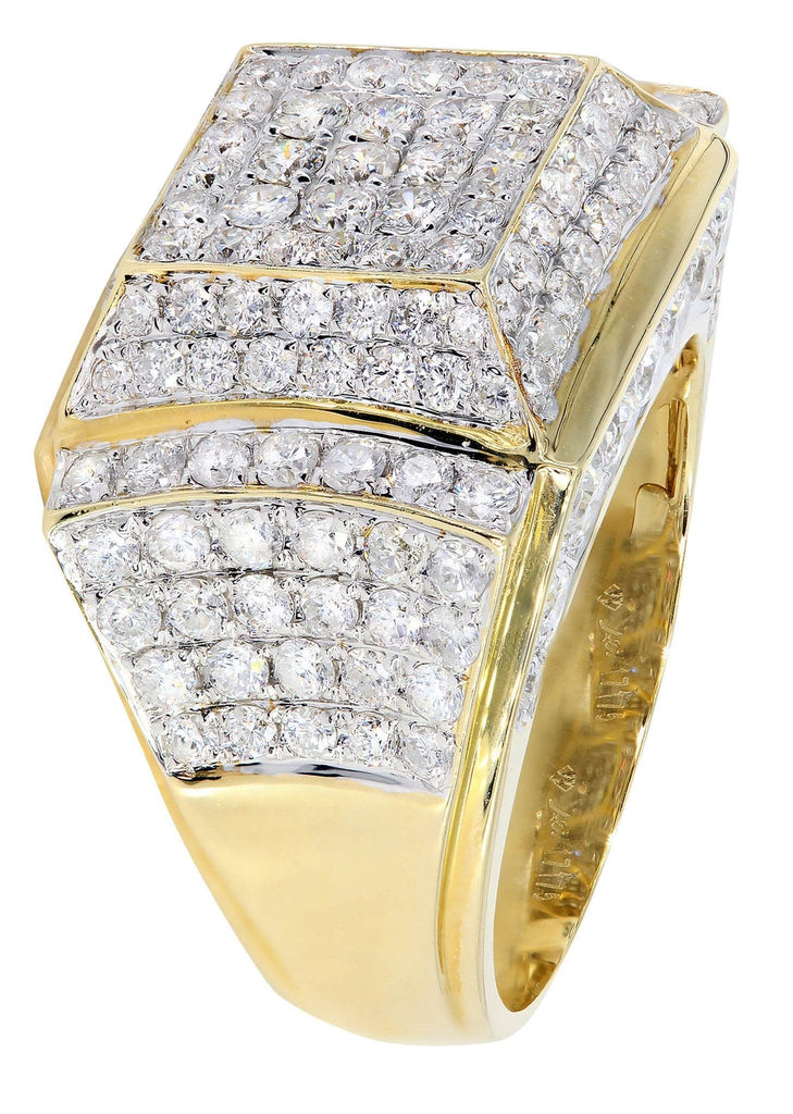14K Yellow Gold Mens Diamond Ring With Approximately 4.09 Carats Of Diamond And 12.42 Grams .This Hand Made Ring Comes In Size 7 But Can Be Adjusted To Any Size.