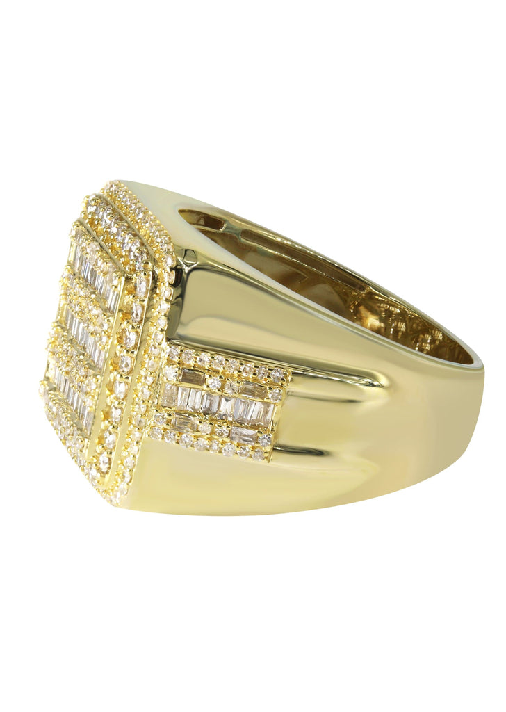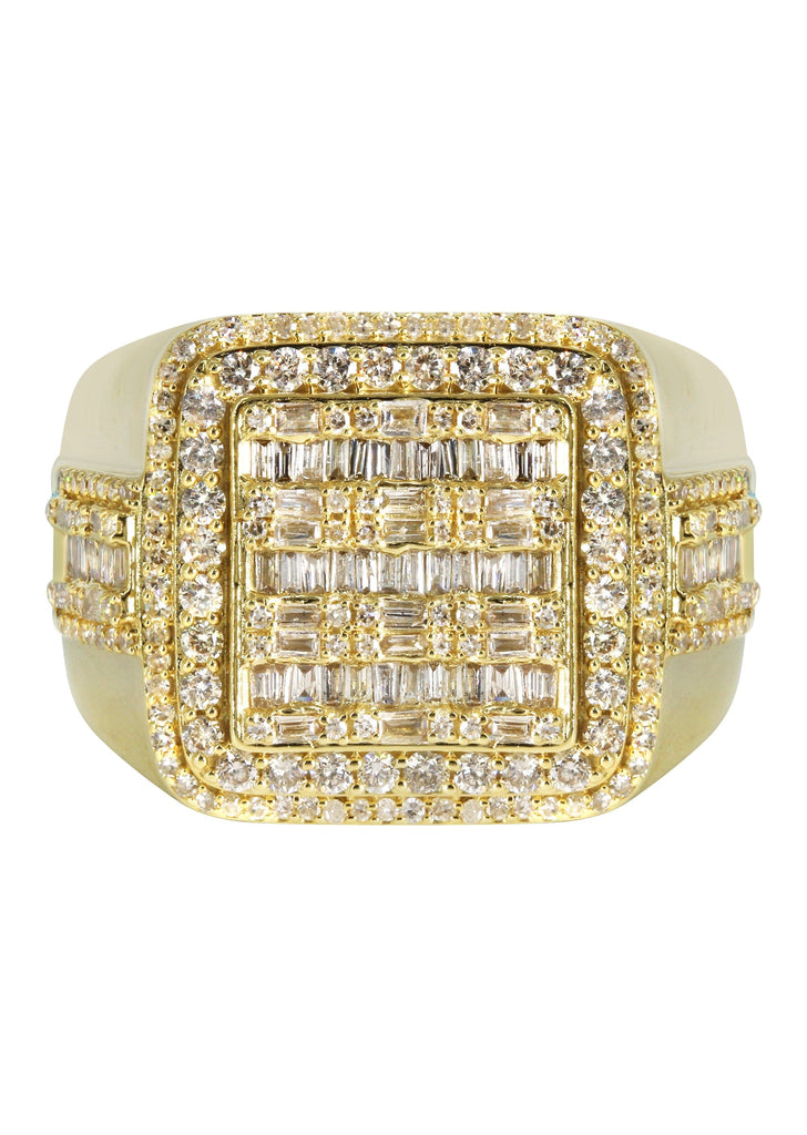 10K Yellow Gold Mens Baguette Diamond Ring With Approximately 1.75 Carats Of Diamond And 10.7 Grams. This Hand Made Ring Comes In Size 7 But Can Be Adjusted To Any Size.