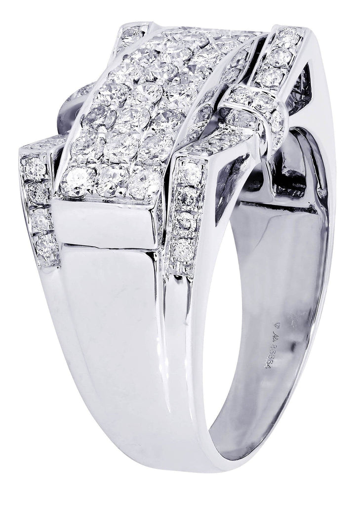 14K White Gold Mens Diamond Ring With Approximately 1.98 Carats Of Diamond And 9.8 Grams .This Hand Made Ring Comes In Size 7 But Can Be Adjusted To Any Size.