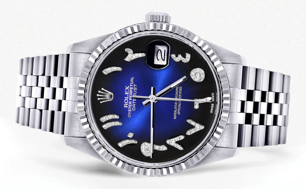 Mens Rolex Datejust Watch 16200 | Fluted Bezel | 36Mm | Blue Black Arabic Dial | Jubilee Band