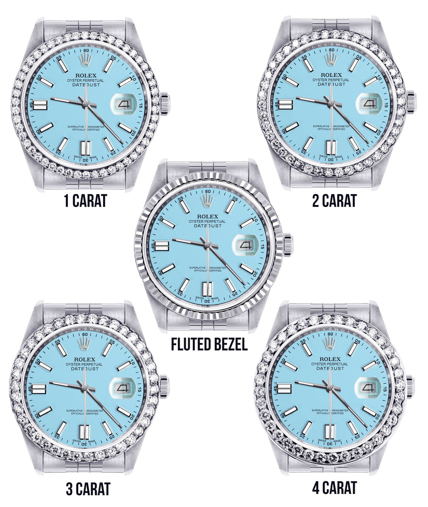 Rolex Datejust 36MM with a Jubilee Band. Customizable Diamond Bezel From 1.00-4.00 Carat. Below are more details of the watch.