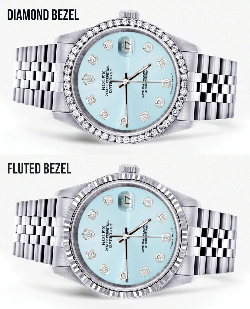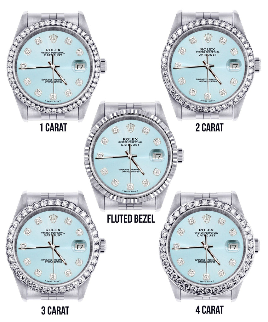 Rolex Datejust 36MM with a Jubilee Band. Customizable Diamond Bezel From 1.00-4.00 Carat. Below are more details of the watch.