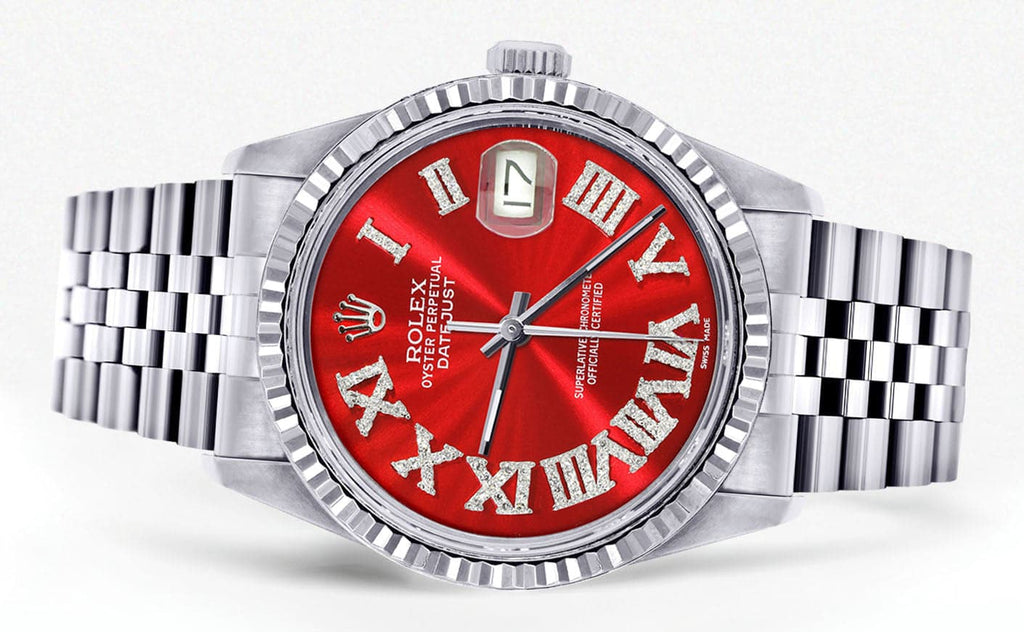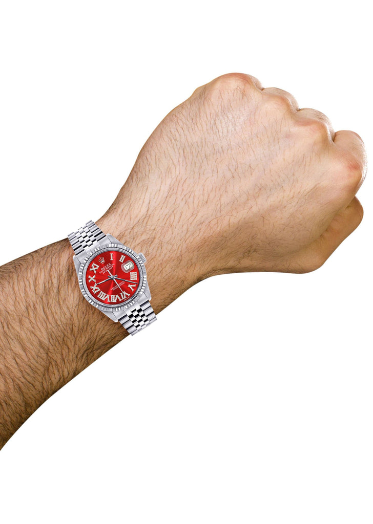 Mens Rolex Datejust Watch 16200 | Fluted Bezel | 36Mm | Red Roman Numeral Dial | Jubilee Band