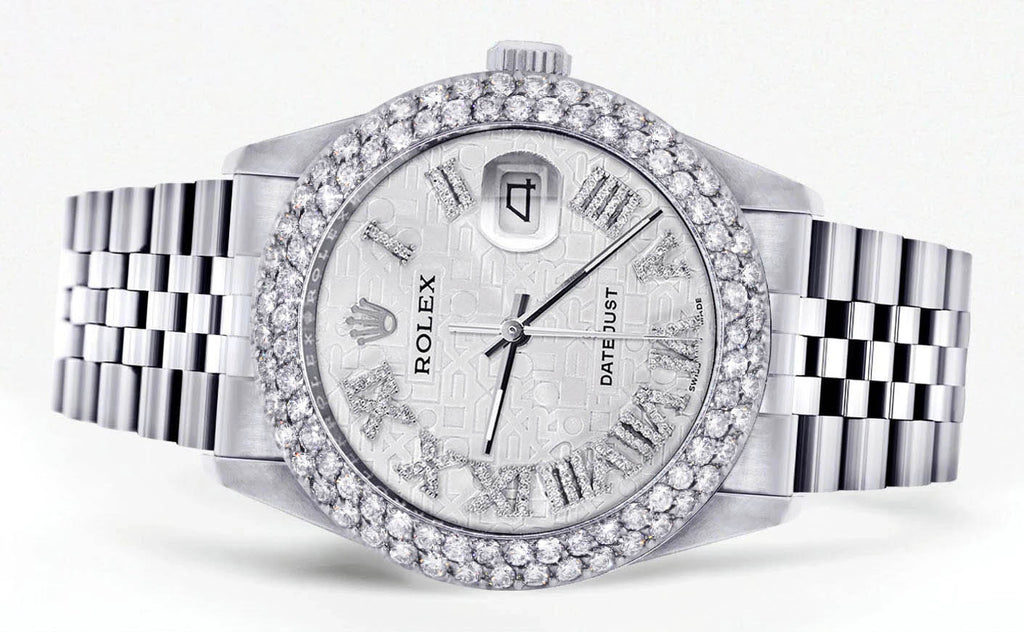 Mens Rolex Datejust Watch 16200 | 36Mm | White Texture Roman Numeral Dial | Two Row 4.25 Carat Bezel | Jubilee Band