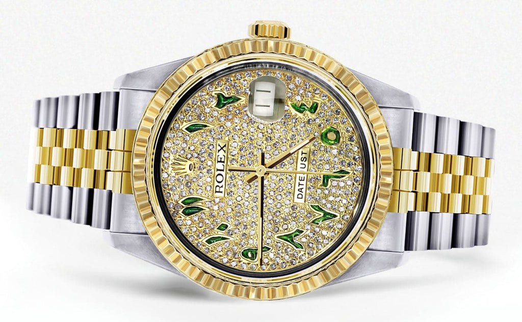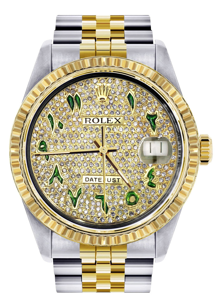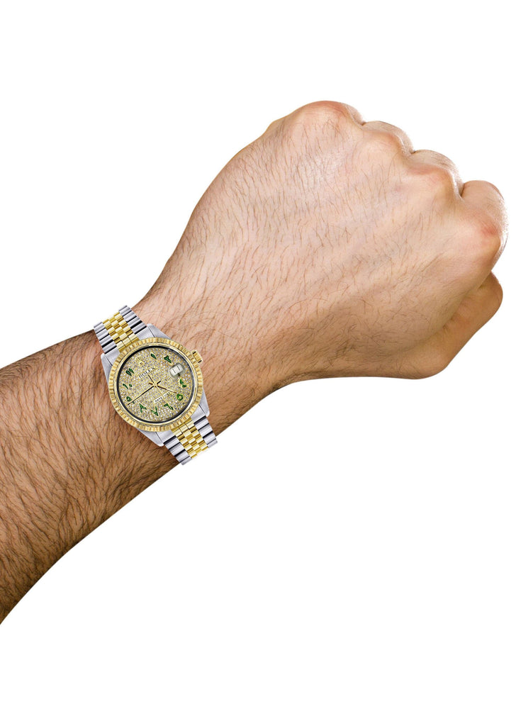 Mens Rolex Datejust Watch 16233 Two Tone | Fluted Bezel | 36Mm | Diamond Green Arabic Numeral | Jubilee Band