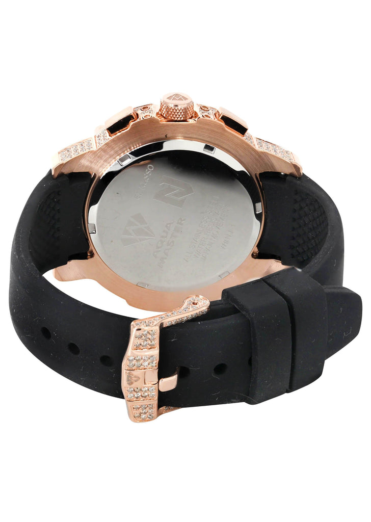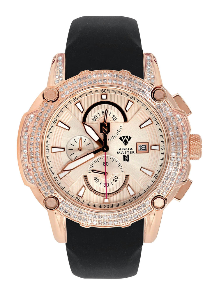 Designer Aquamaster Rose Gold Tone Diamond Watch With Approximately 5 Carats Of Vs Quality Diamonds, 50 MM. This Watch Comes With A Rubber Band Which Can Be Adjusted To Any Size For Comfort.