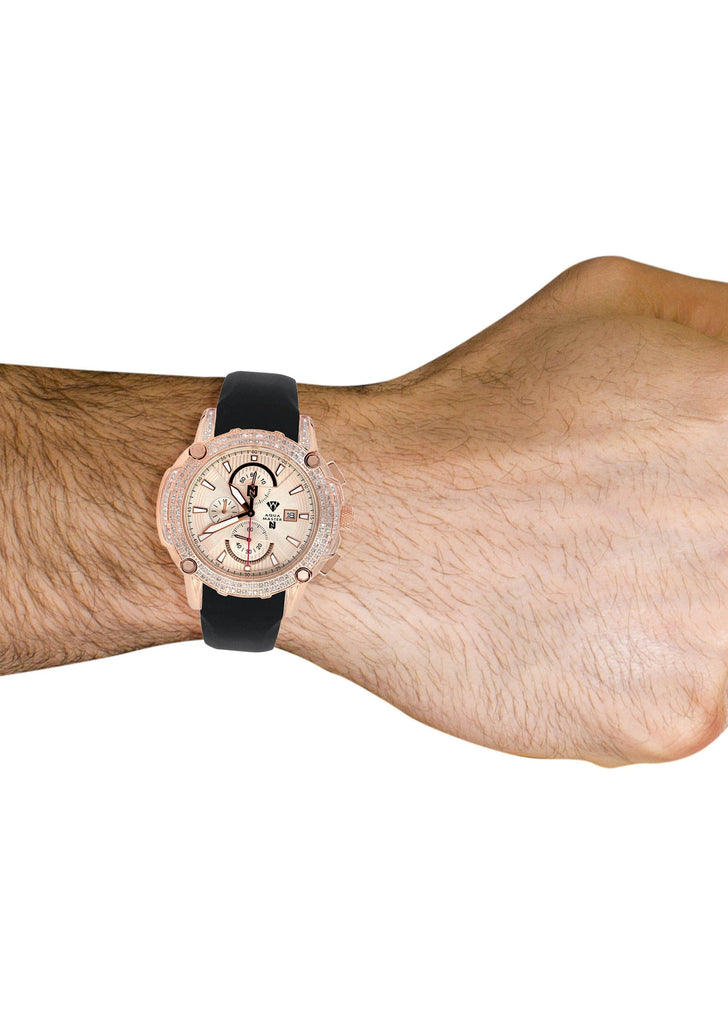 Mens Rose Gold Tone Diamond Watch | Appx. 5 Carats