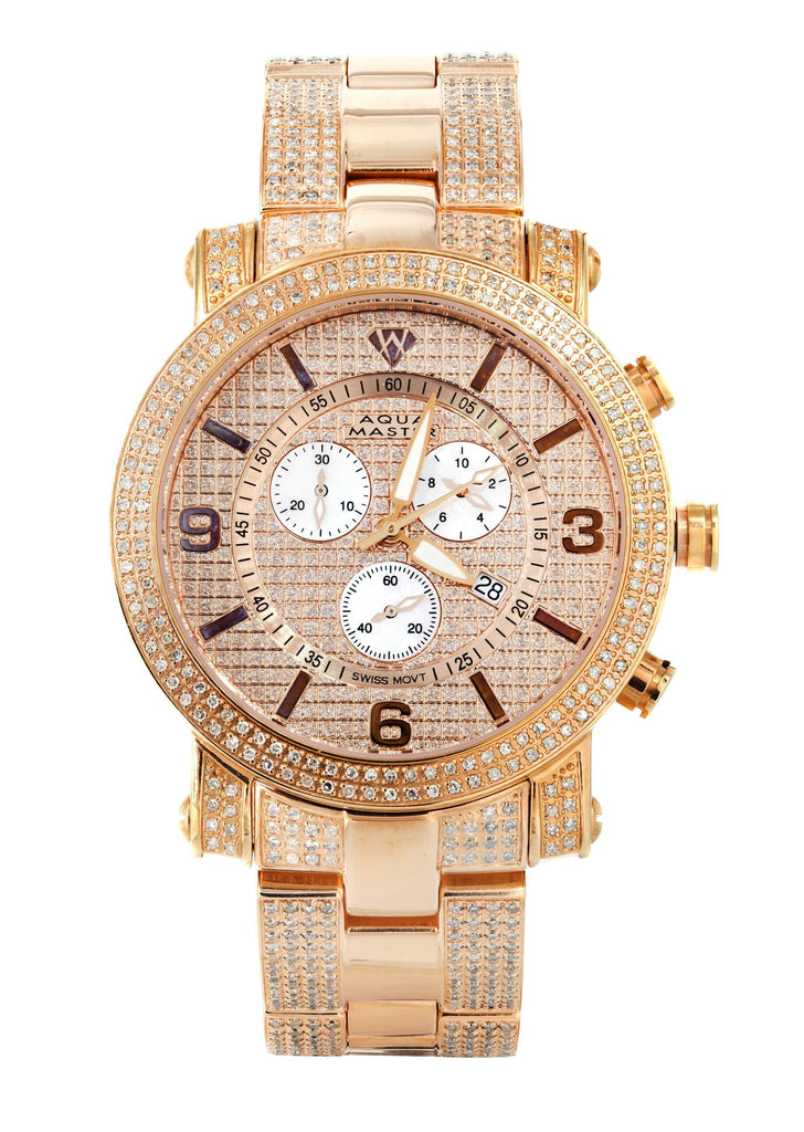 | Designer Aquamaster Rose Gold Tone Diamond Watch With Approximately 8.5 Carats Of Vs Quality Diamonds, 48MM Case. This Watch Comes With A Steel Band Which Can Be Adjusted To Any Size For Comfort. |