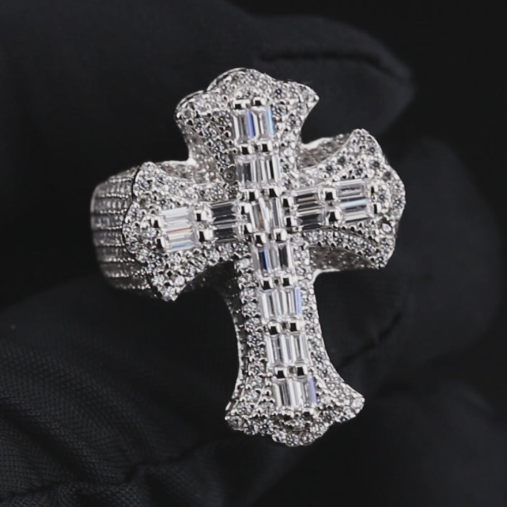 Pure Silver (925) CZ Cross Ring with Rhodium bonded 6 times to provide optimum quality. With an average width of 0.9 inches and average length of 1.1 inches. These rings are fully customizable, so you can pick your size above.