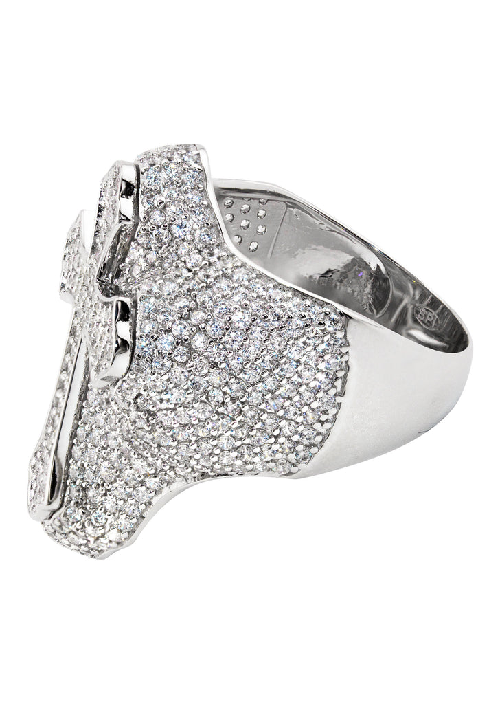 Mens Silver CZ Cross Ring | Appx 10 Grams