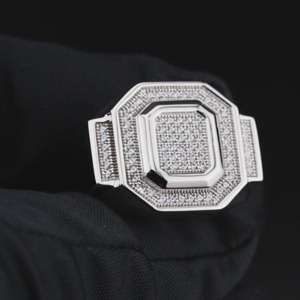 Pure Silver (925) CZ Signet Ring with Rhodium bonded 6 times to provide optimum quality. With an average width of 0.9 inches and average length of 0.72 inches. These rings are fully customizable, so you can pick your size above.