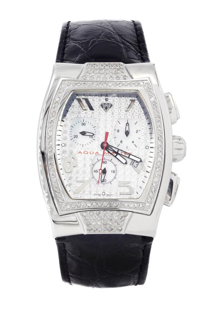 | Designer Aquamaster White Gold Tone Diamond Watch With Approximately 1.5 Carats Of Vs Quality Diamonds, 38MM Case. This Watch Comes With A Leather Band Which Can Be Adjusted To Any Size For Comfort. |