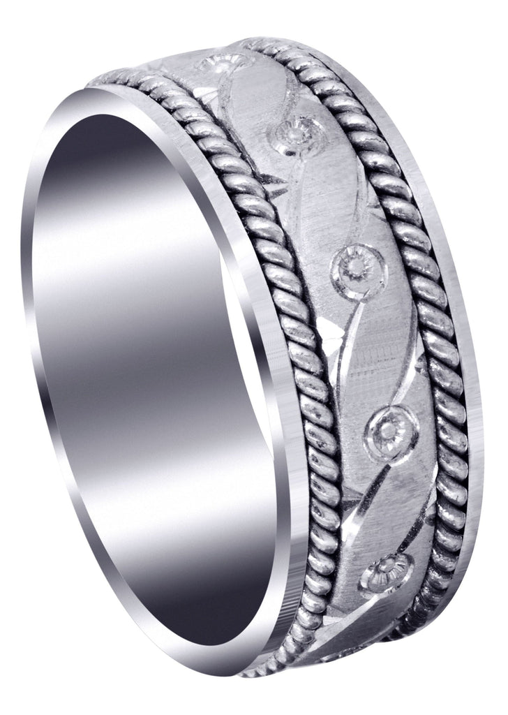 Modern Mens Wedding Band Which Comes In 8 Mm Width,  The Ring Is In Cross Satin Finish And Can Be Made In Any Metal Of Choice As Selected Above.