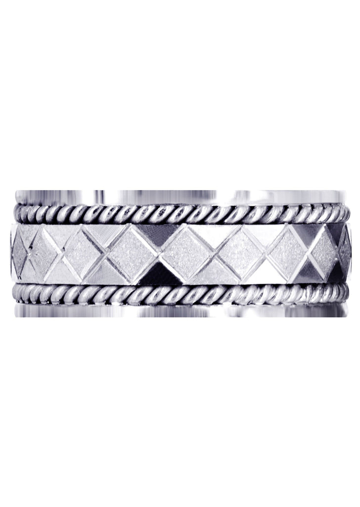 Modern Mens Wedding Band Which Comes In 8.5 Mm Width,  The Ring Is In Stone Finish Finish And Can Be Made In Any Metal Of Choice As Selected Above.