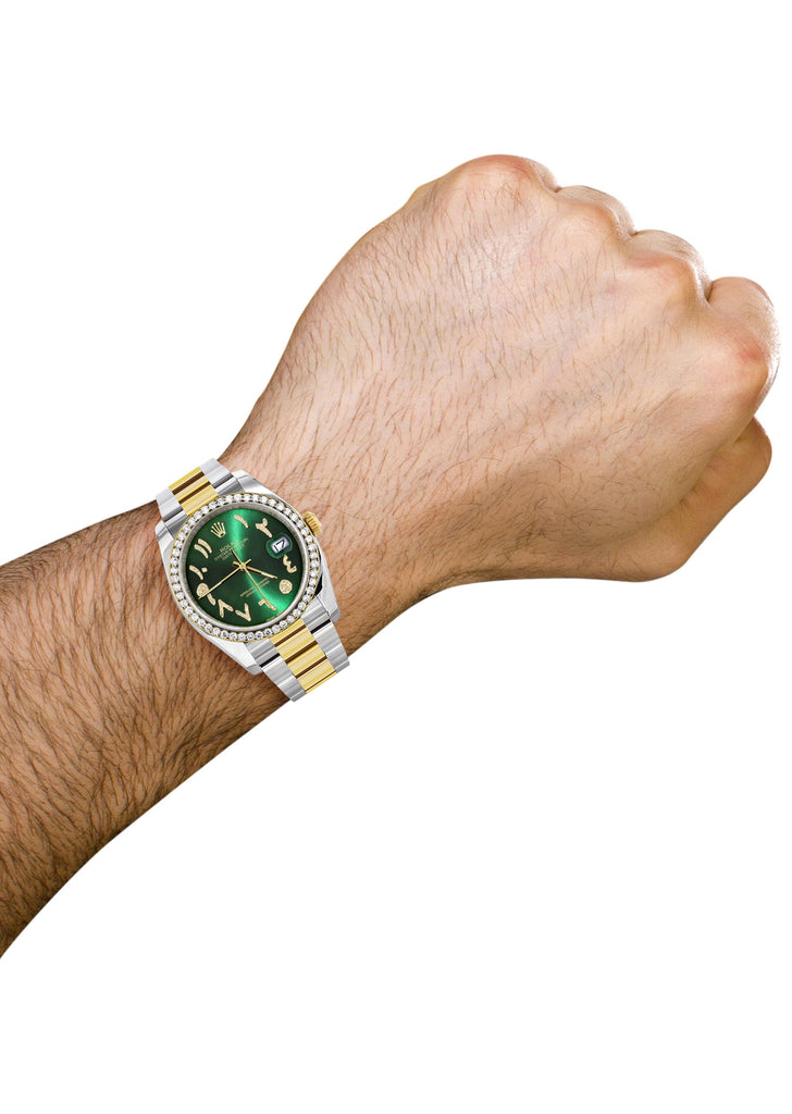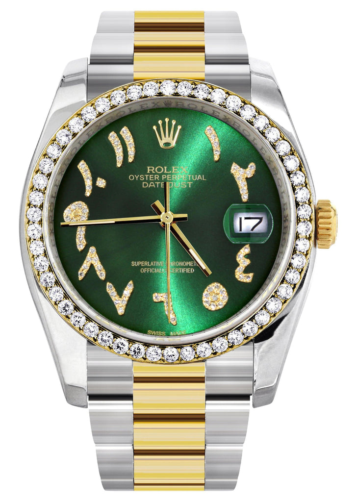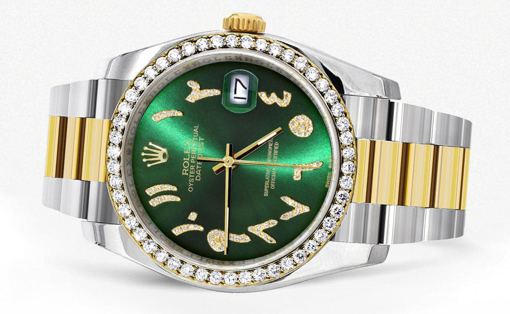 116233 | Gold & Steel Rolex Datejust Watch | 36Mm | Green Arabic Diamond Dial | Oyster Band