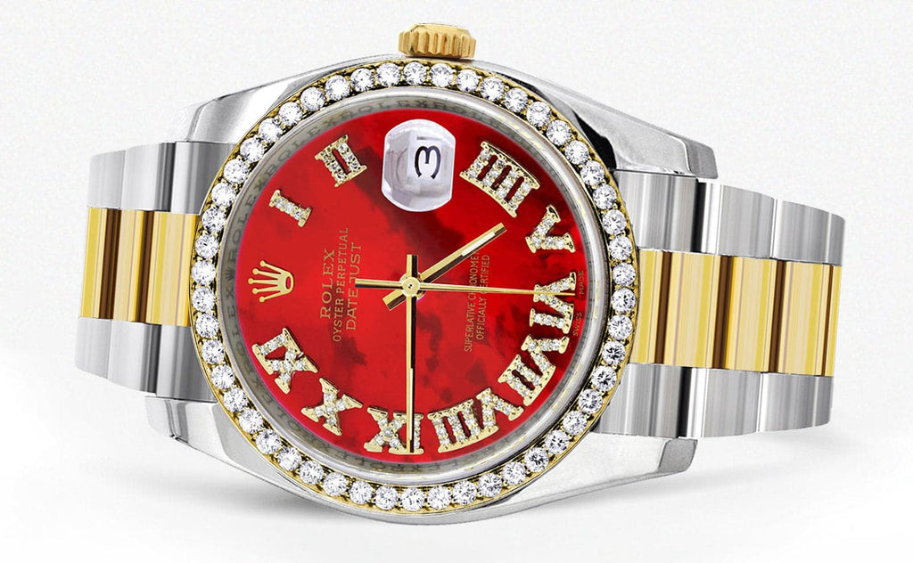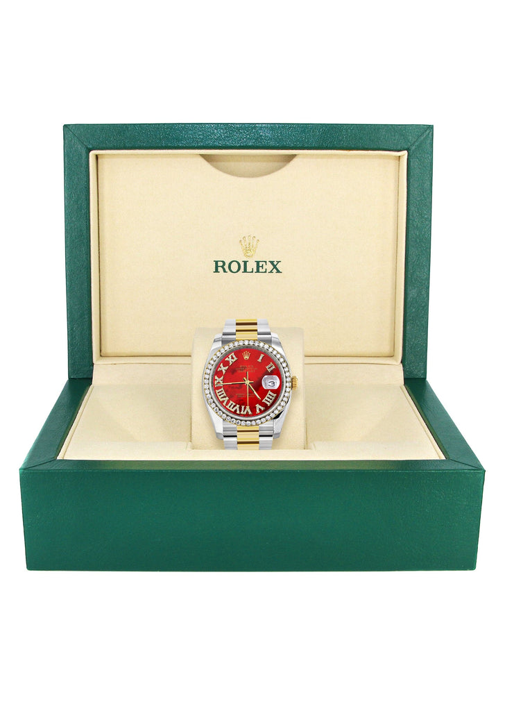 116233 | Gold & Steel Rolex Datejust Watch | 36Mm | Red Mother Of Pearl Roman Diamond Dial | Oyster Band