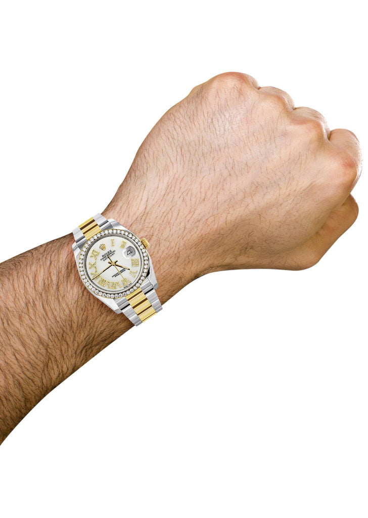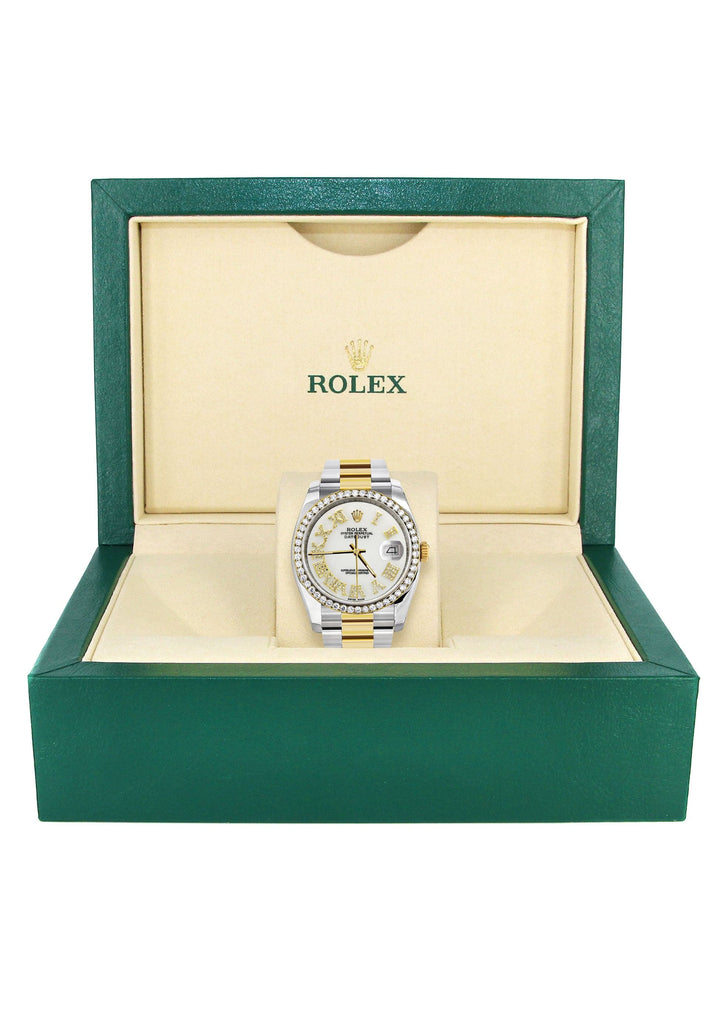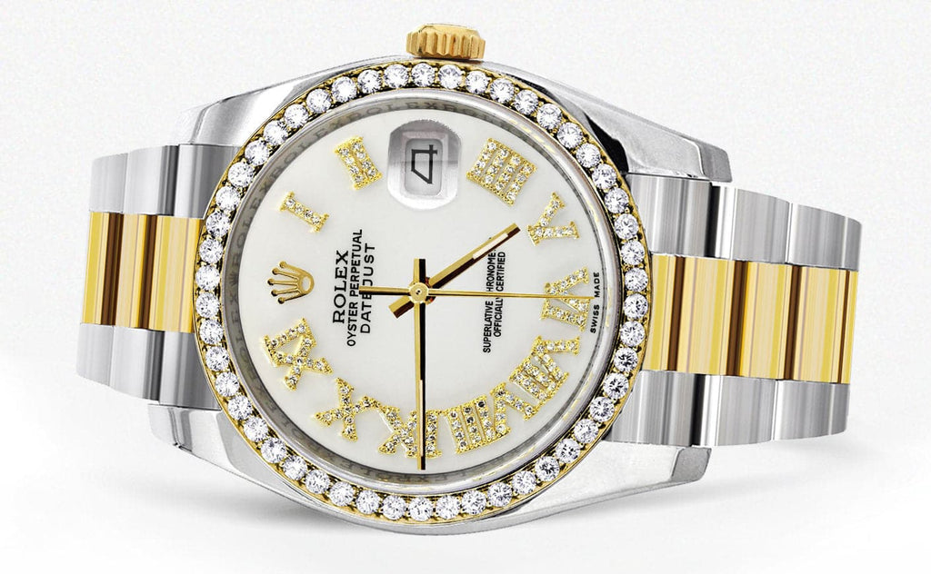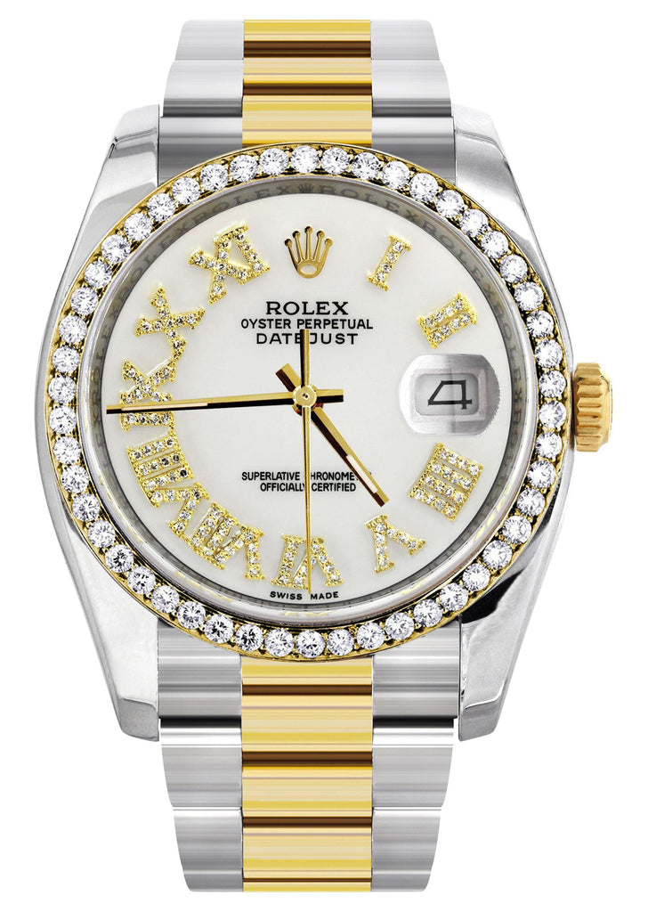 116233 | Gold & Steel Rolex Datejust Watch | 36Mm | White Roman Diamond Dial | Oyster Band