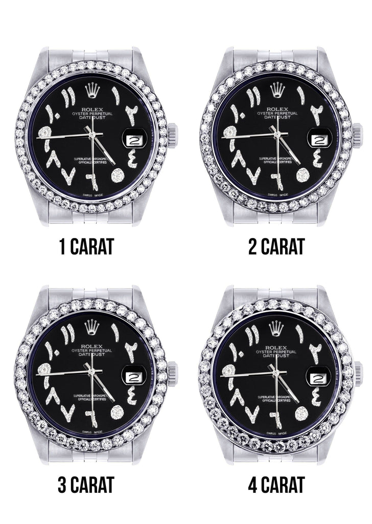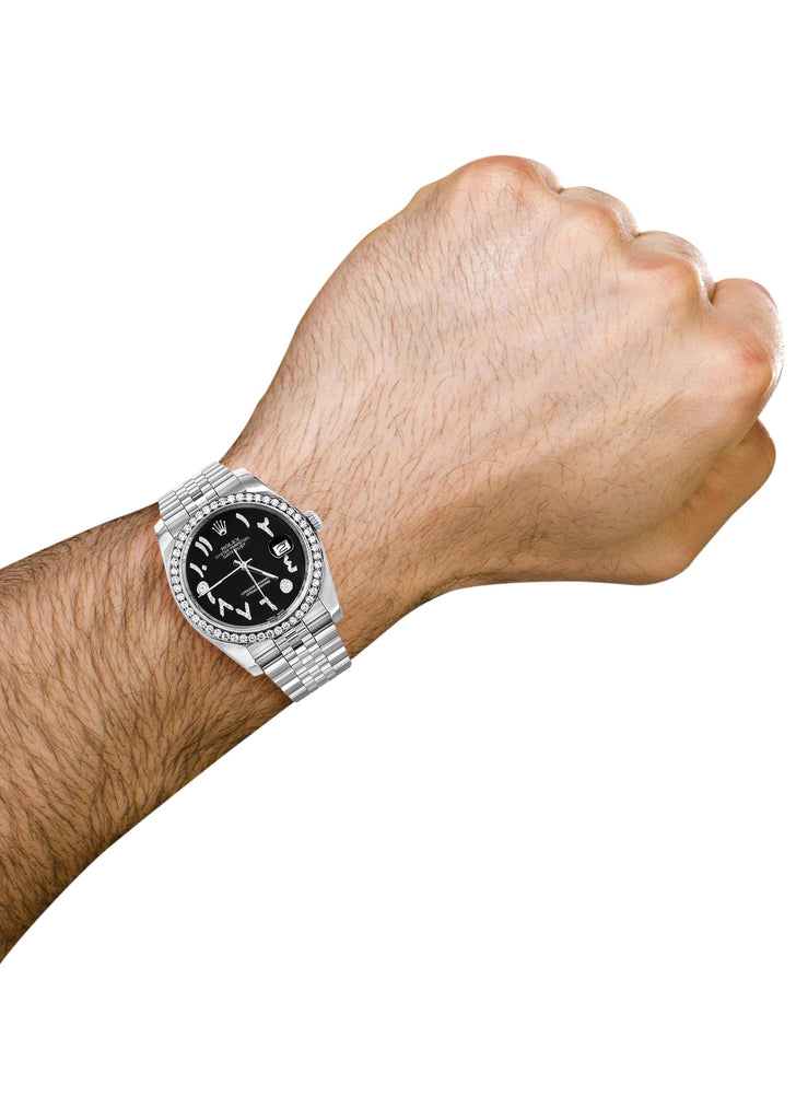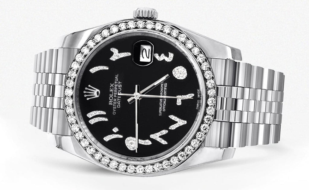116200 | Hidden Clasp | Diamond Rolex Datejust Watch | 36Mm | Black Arabic Diamond Dial | Jubilee Band