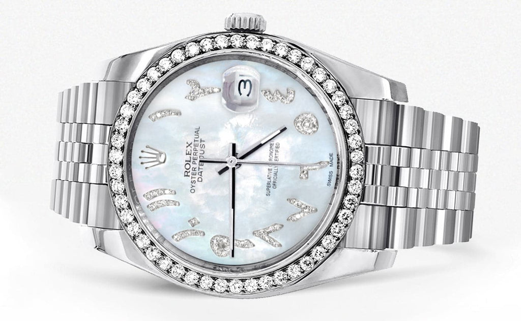 116200 | Hidden Clasp | Diamond Rolex Datejust Watch | 36Mm | Mother of Pearl Arabic Diamond Dial | Jubilee Band