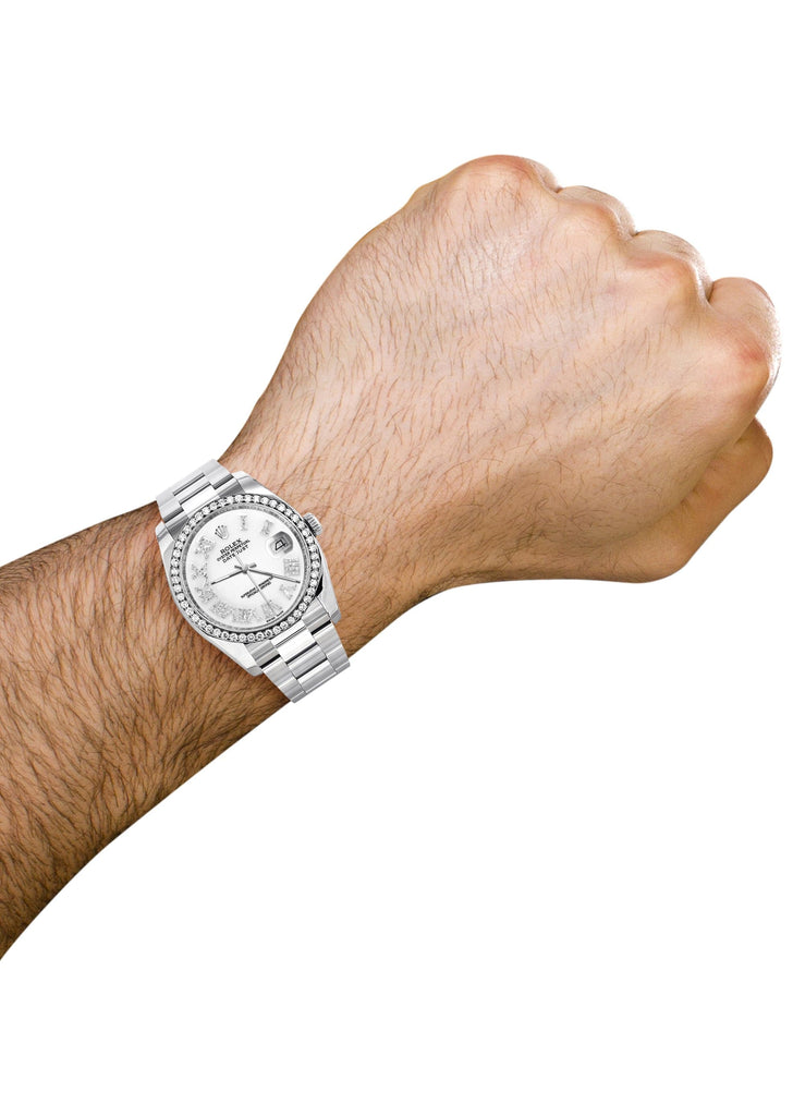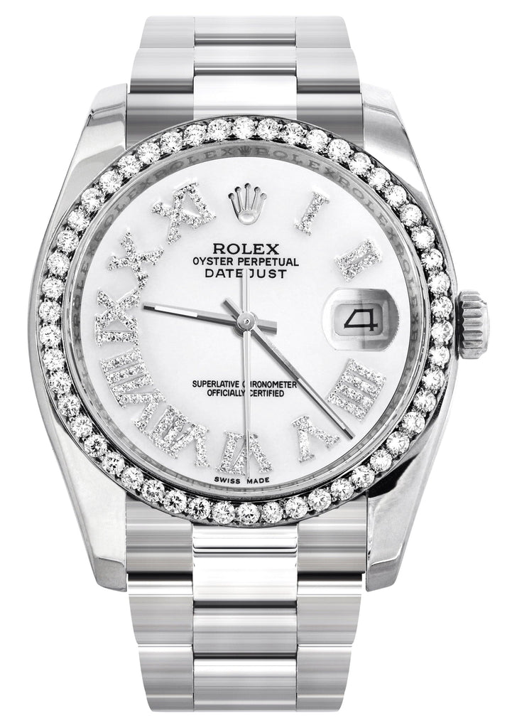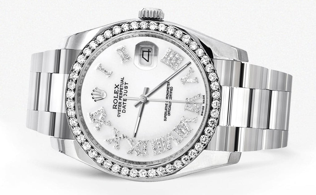 -Custom White Roman Numeral Diamond Dial