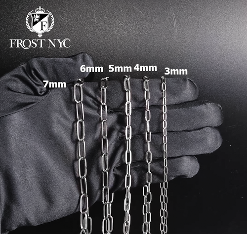 Paper Clip Chain | 10K or 14K White Gold. These chains are fully customizable, so you can pick your gold purity, length and width above. Once you selected your purity, length and width, you can see the adjusted gram weight below the price.