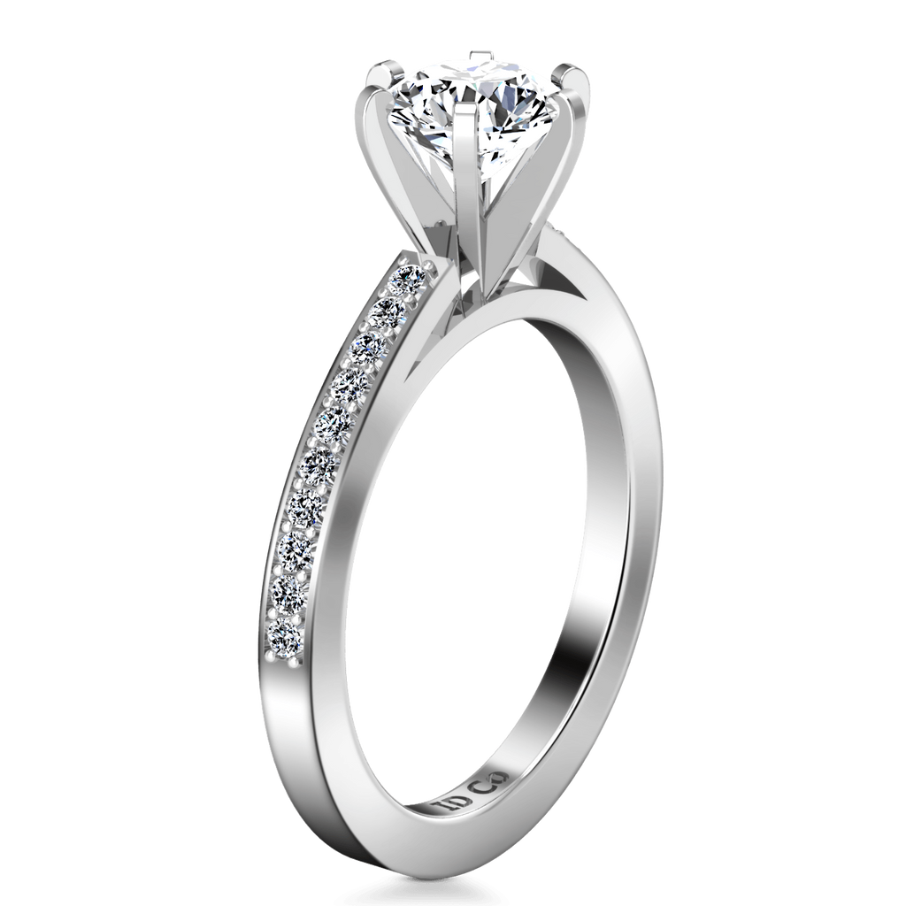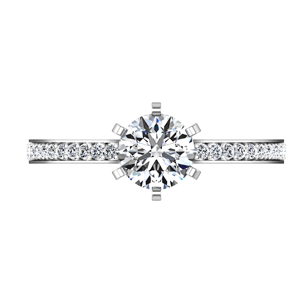 Dazzling and demure this engagement ring features two rows of delicately set diamonds to highlight your center stone. Featured with 0.24 carats of pave diamonds in 14k white gold with an average width of 2mm . This ring is fully customizable, so pick your center diamond size, color and clarity and we will custom build it for you.