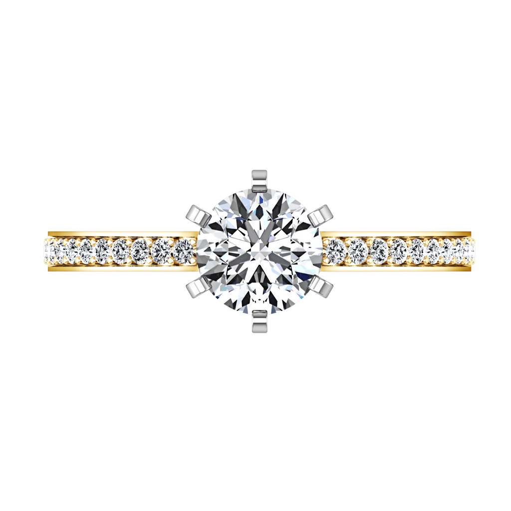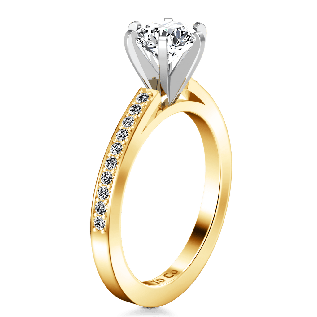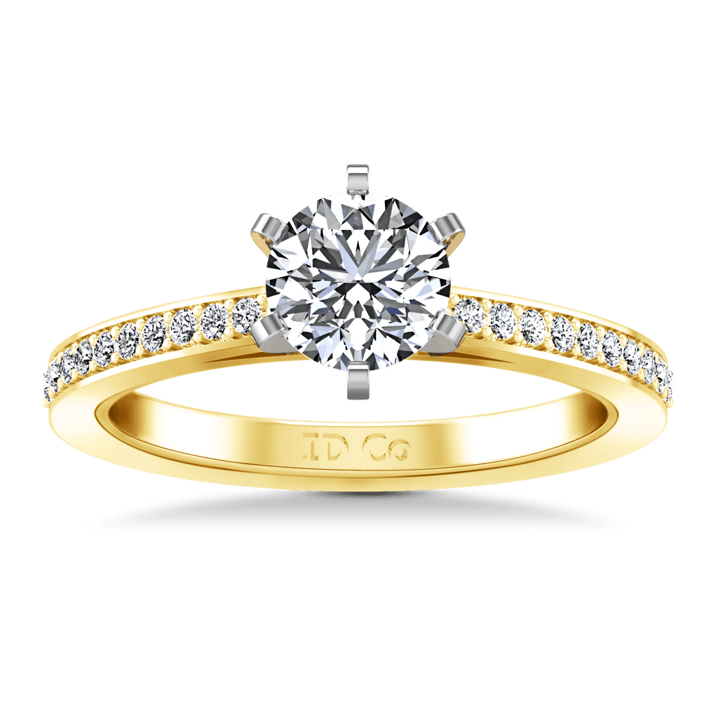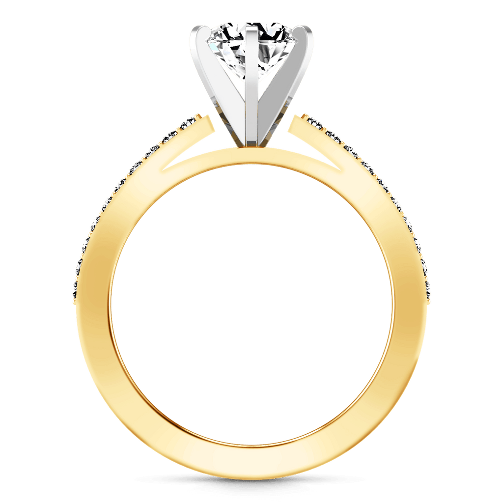 Dazzling and demure this engagement ring features two rows of delicately set diamonds to highlight your center stone. Featured with 0.24 carats of pave diamonds in 14k yellow gold with an average width of 2mm . This ring is fully customizable, so pick your center diamond size, color and clarity and we will custom build it for you.