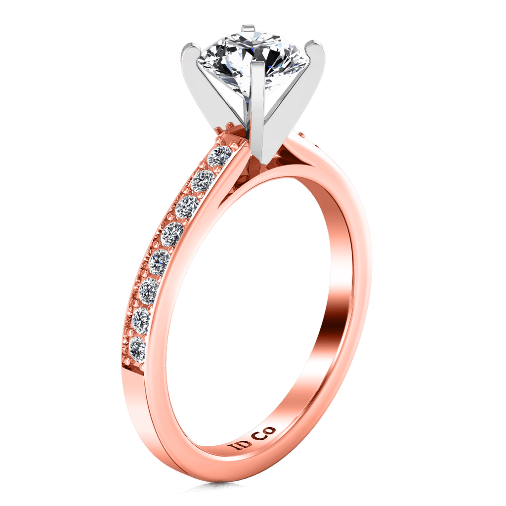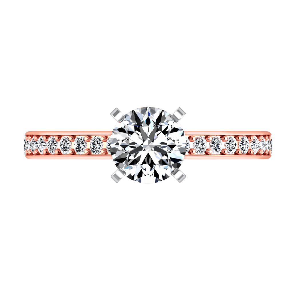 This lovely and graceful ring features two rows of delicate glittering pave diamonds. Featured with 0.34 carats of pave diamonds in 14k rose gold with an average width of 2mm . This ring is fully customizable, so pick your center diamond size, color and clarity and we will custom build it for you.