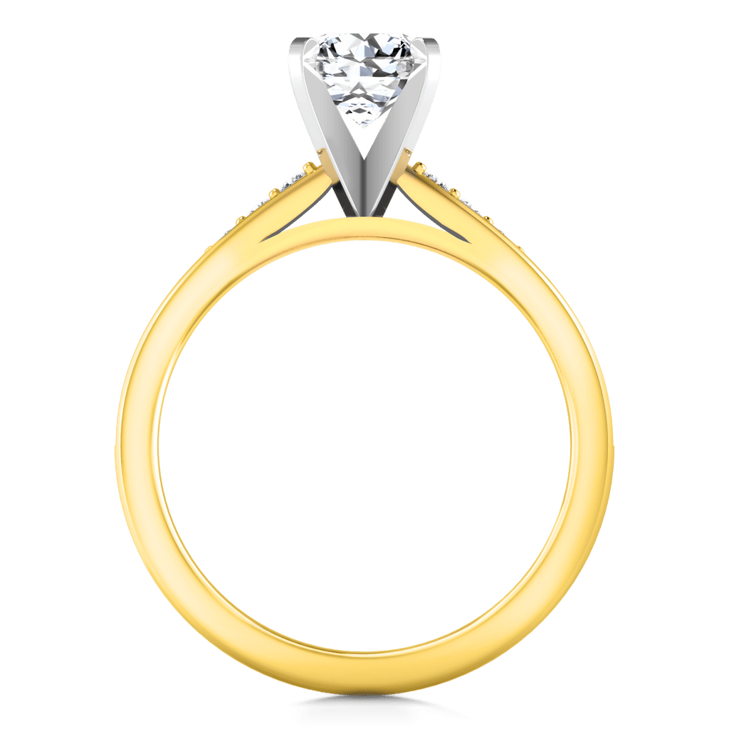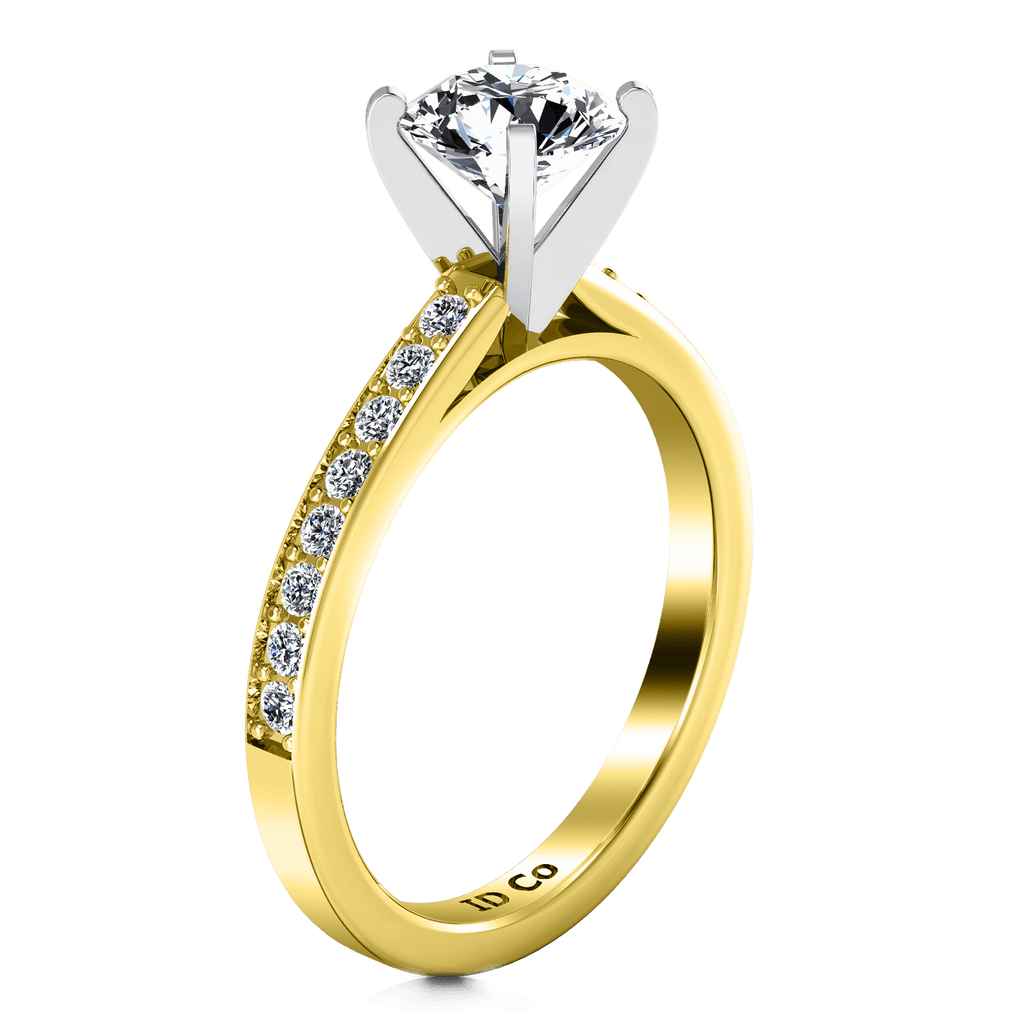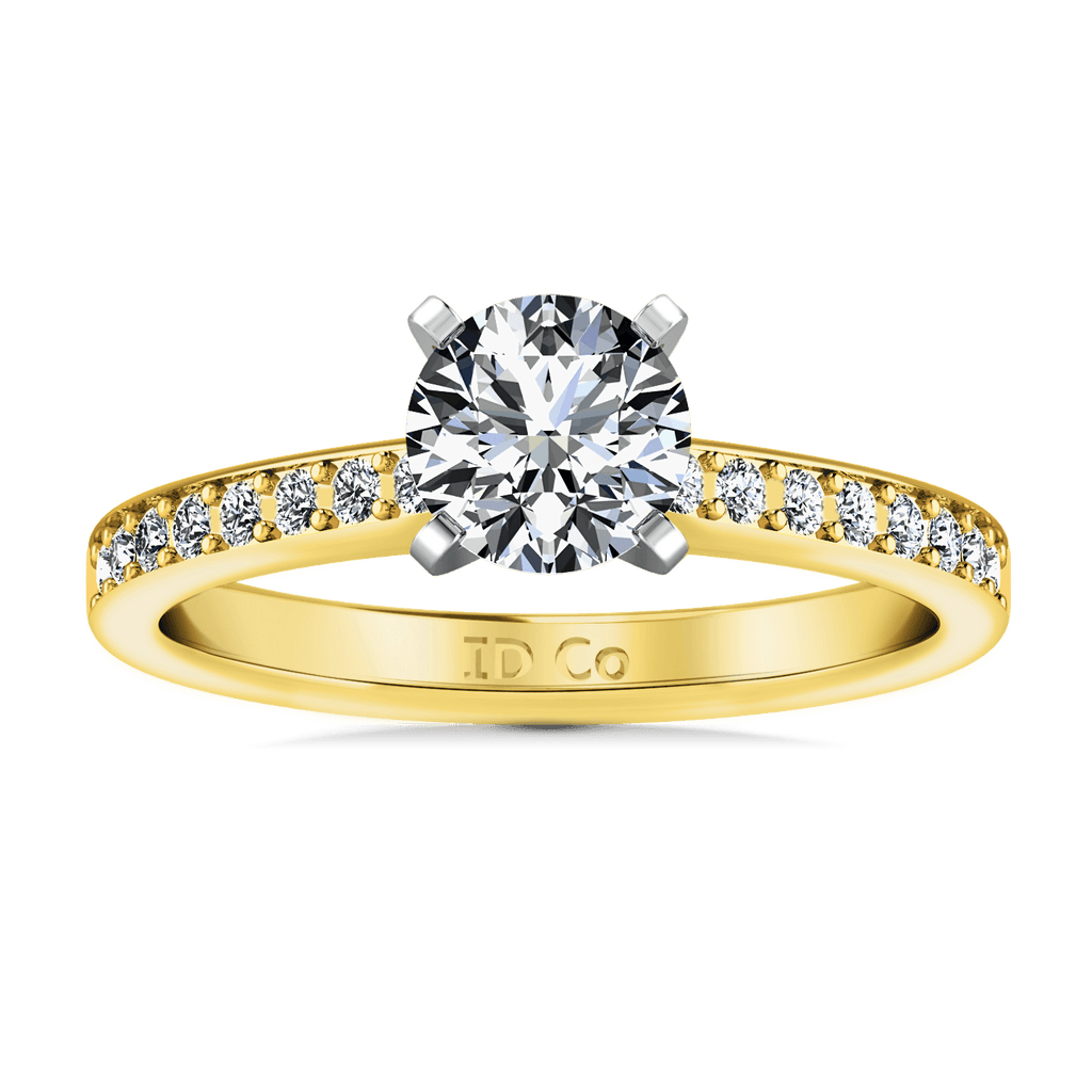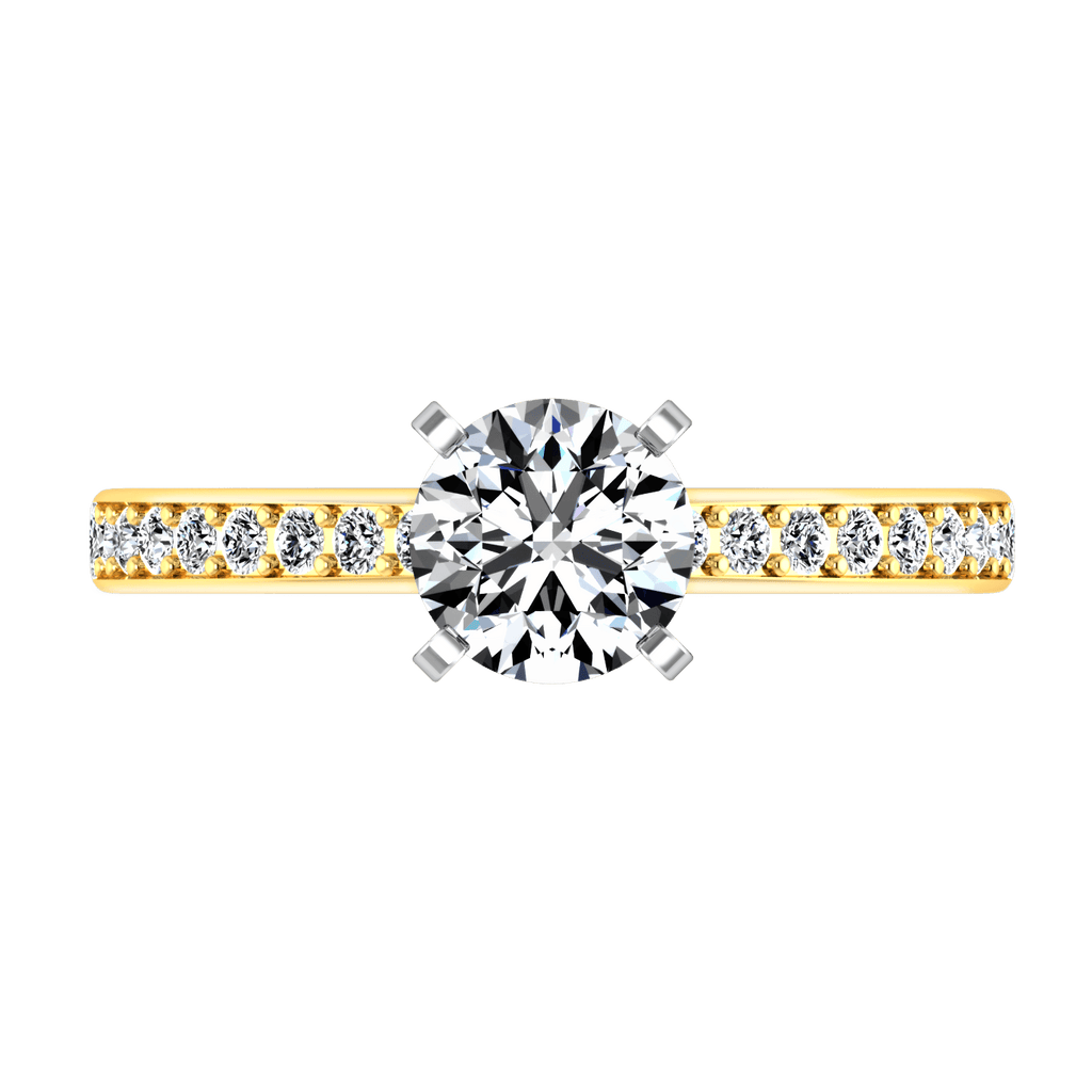 This lovely and graceful ring features two rows of delicate glittering pave diamonds. Featured with 0.34 carats of pave diamonds in 14k yellow gold with an average width of 2mm . This ring is fully customizable, so pick your center diamond size, color and clarity and we will custom build it for you.