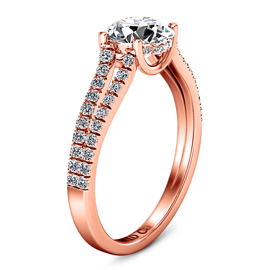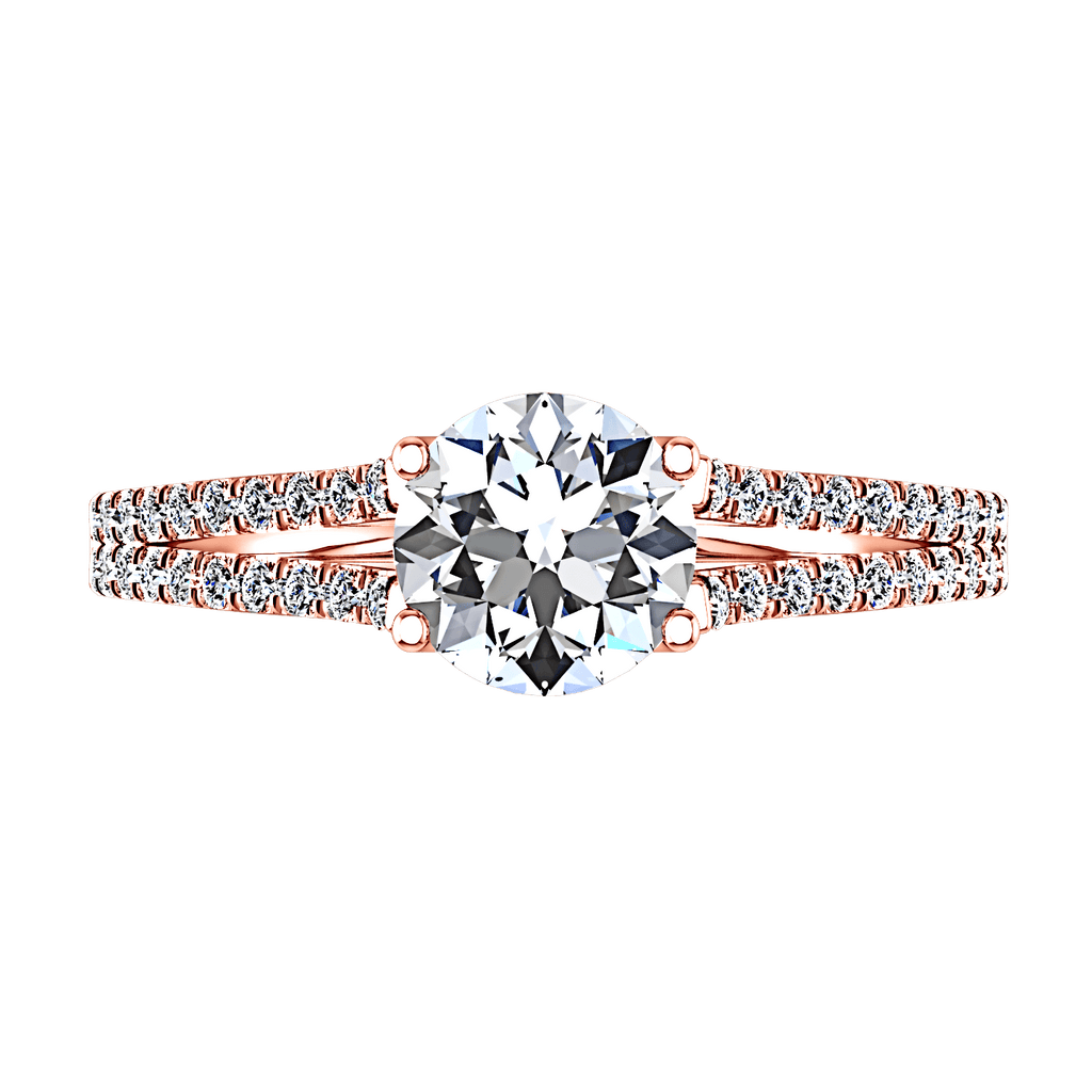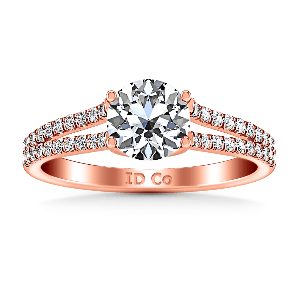 Take her breath away with this captivating design, diamond accent split shank mounting makes this ring an allurig beauty. Featured with 0.24 carats of pave diamonds in 14k rose gold with an average width of 2.5mm . This ring is fully customizable, so pick your center diamond size, color and clarity and we will custom build it for you.