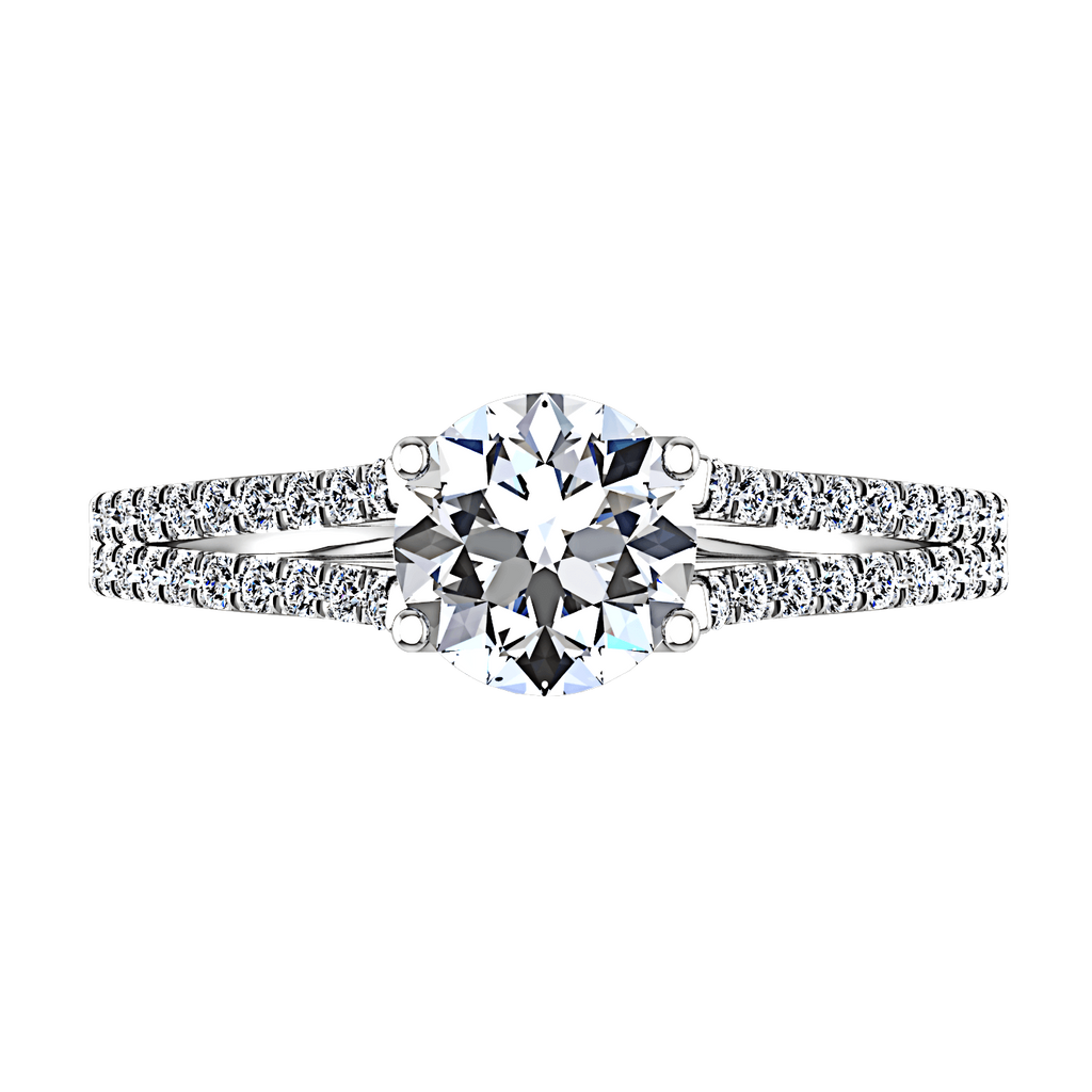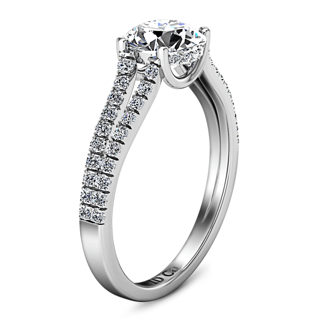 Take her breath away with this captivating design, diamond accent split shank mounting makes this ring an allurig beauty. Featured with 0.24 carats of pave diamonds in 14k white gold with an average width of 2.5mm . This ring is fully customizable, so pick your center diamond size, color and clarity and we will custom build it for you.