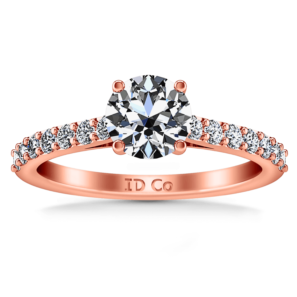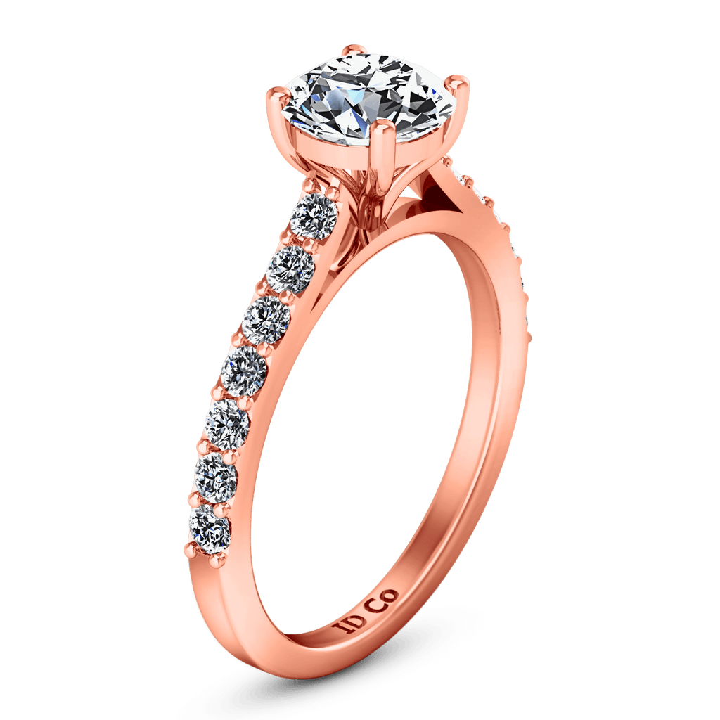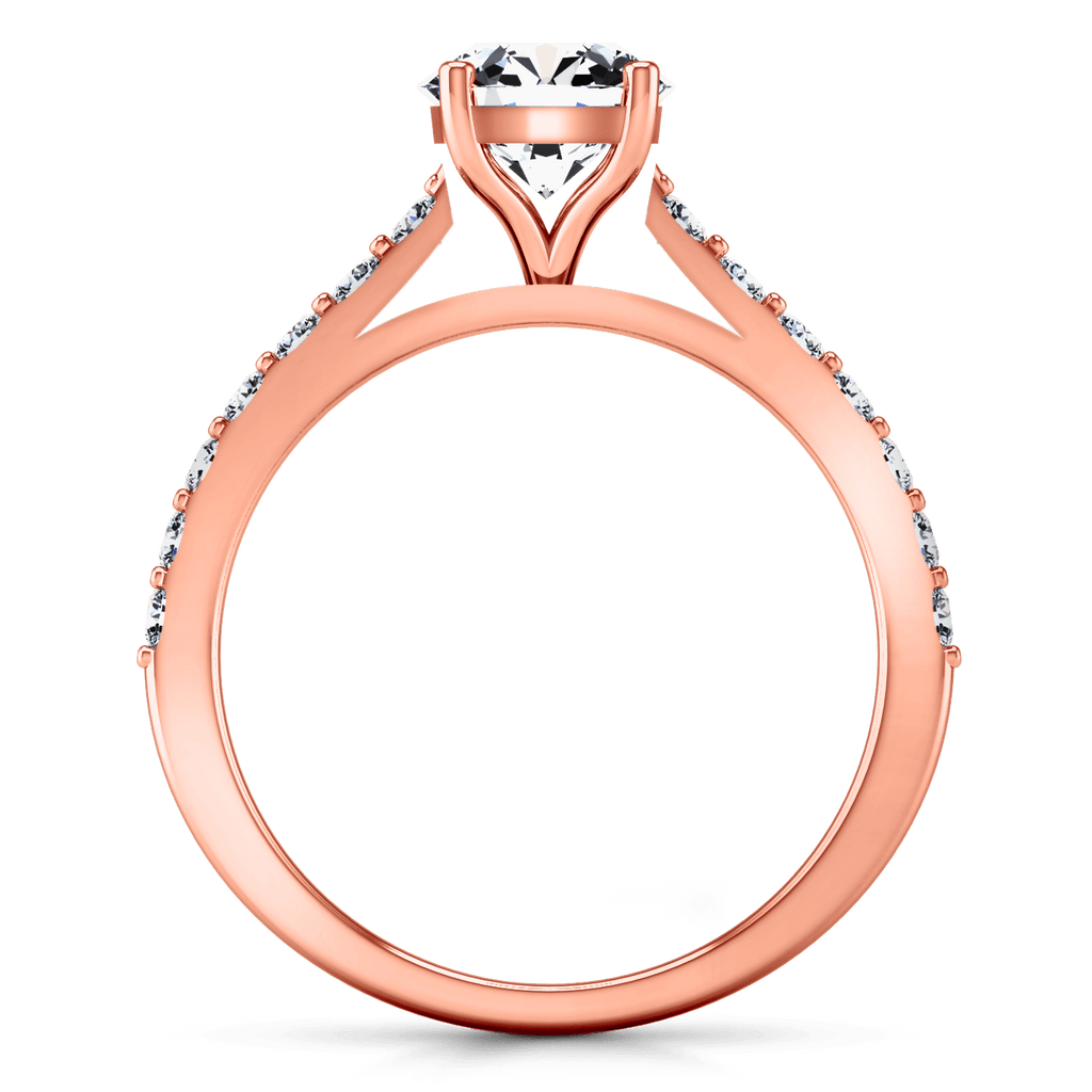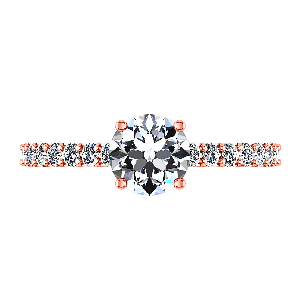 Dainty and ethereal is this diamond accent mounting that decorates and frames your resplendent center diamond. Featured with 0.28 carats of pave diamonds in 14k rose gold with an average width of 2mm . This ring is fully customizable, so pick your center diamond size, color and clarity and we will custom build it for you.