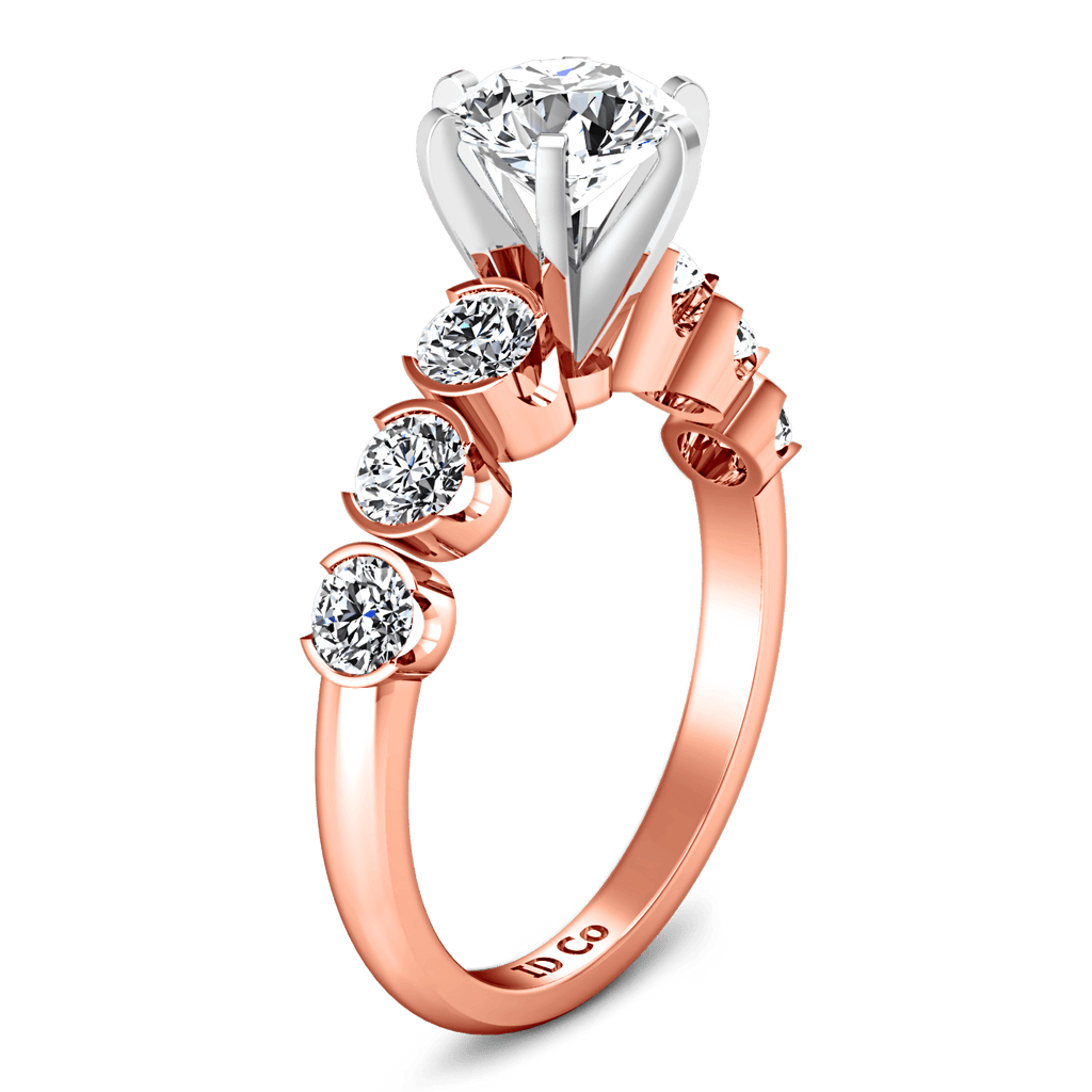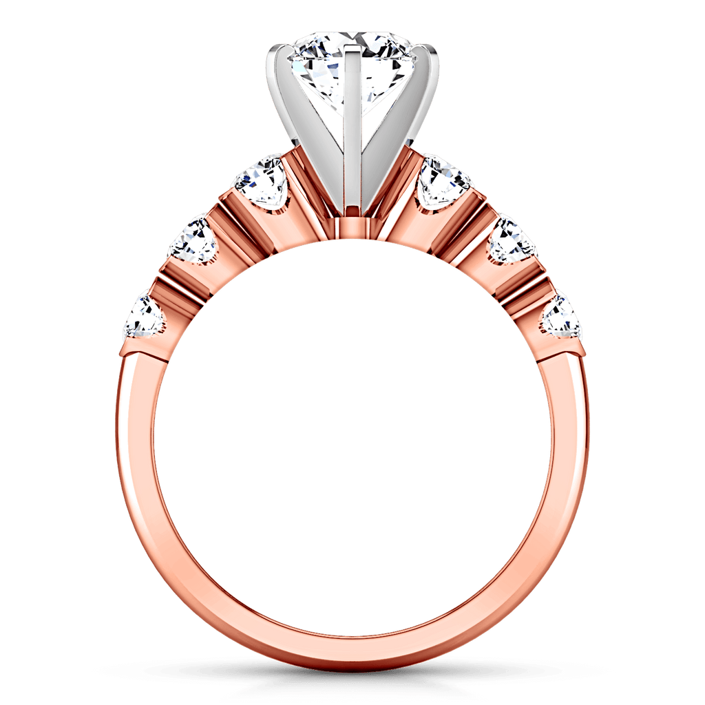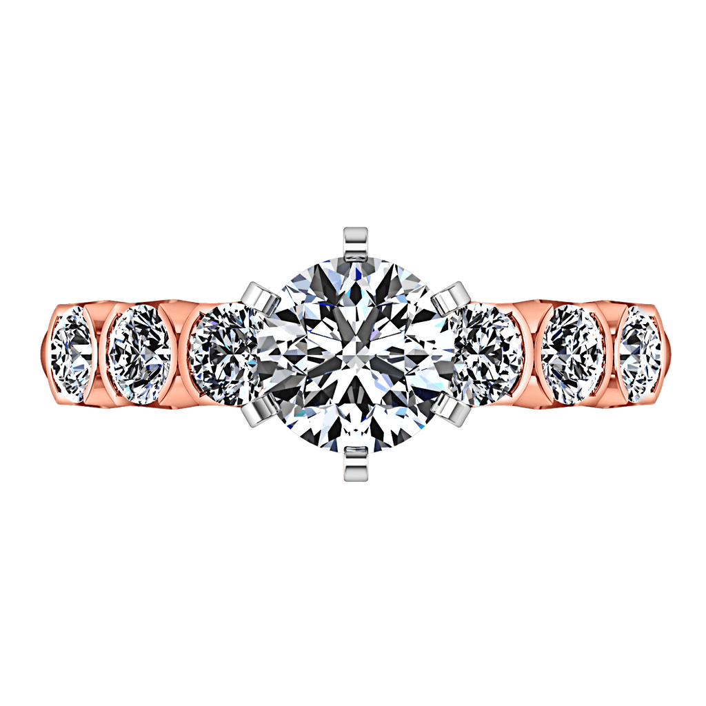 This tasteful and pretty ring features brilliant diamonds set on either side of your sparkling center stone. Featured with 0.58 carats of pave diamonds in 14k rose gold with an average width of 2mm . This ring is fully customizable, so pick your center diamond size, color and clarity and we will custom build it for you.