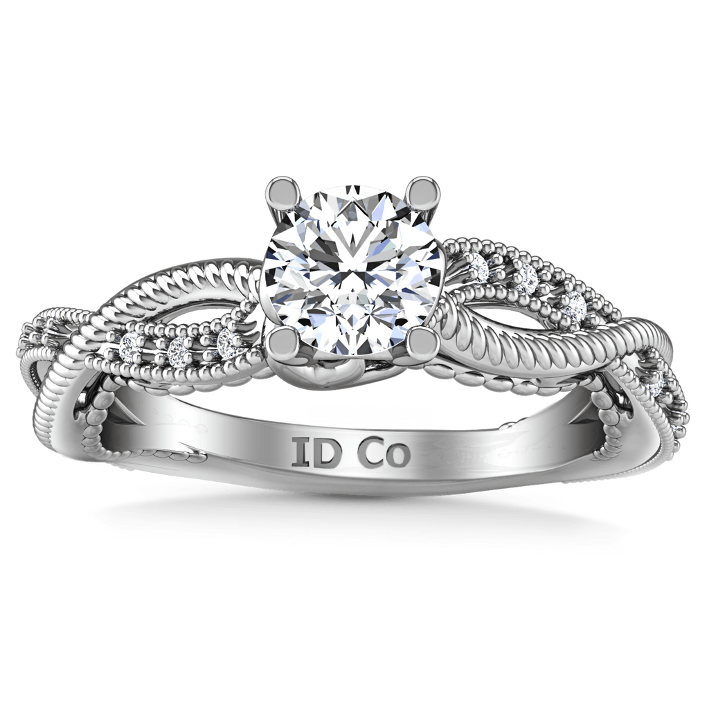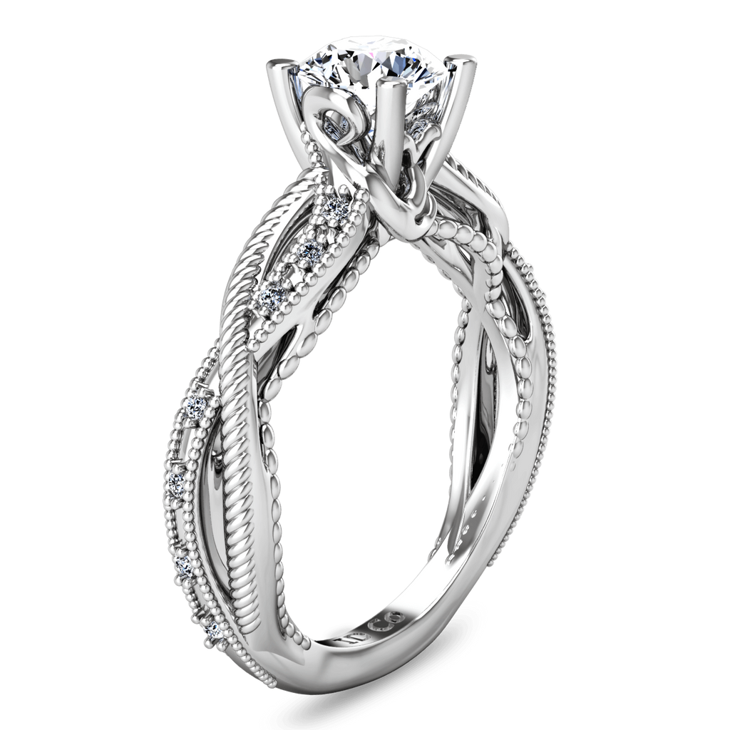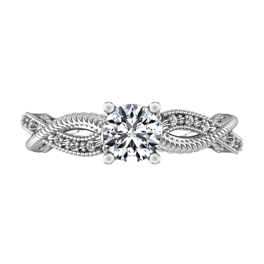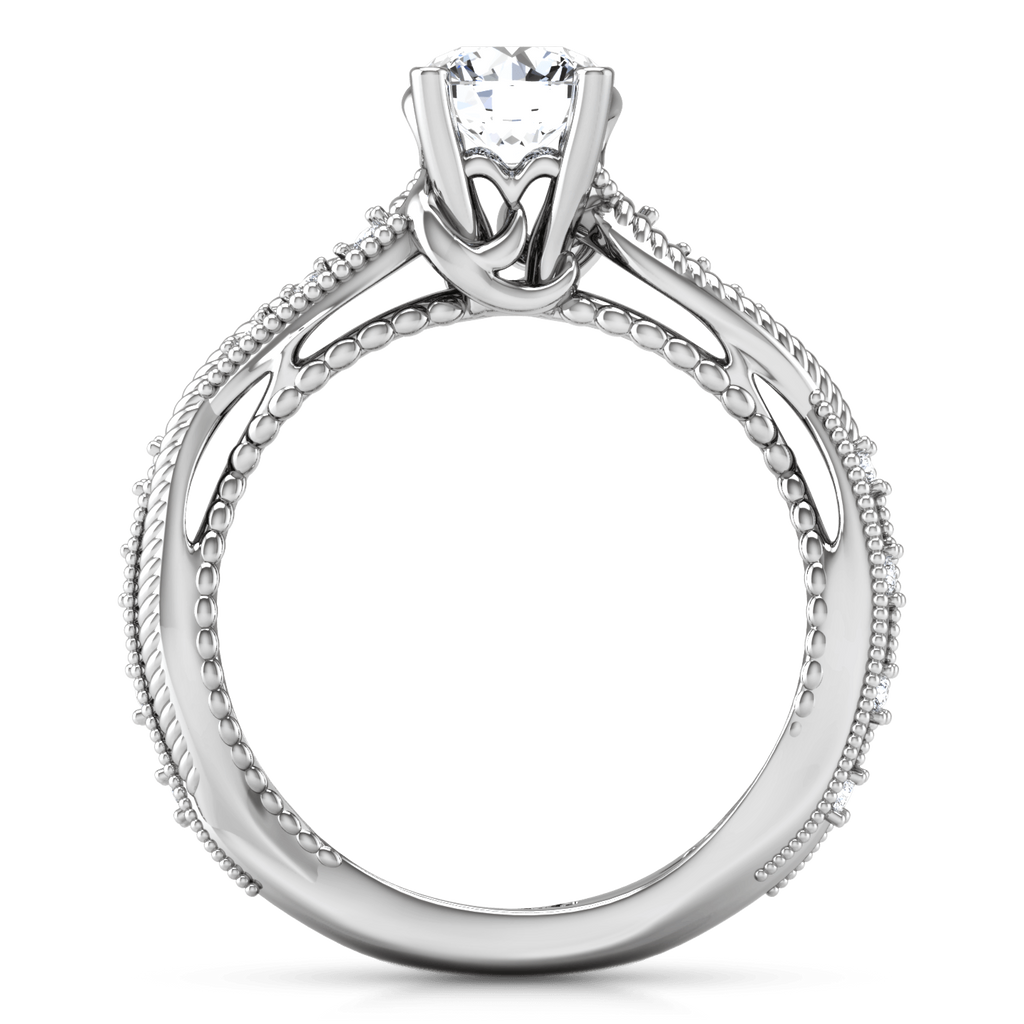 Gorgeous beaded metal and scintillating diamonds are gently twisted to perfection in this mounting that will elegantly showcase your center diamond. Featured with 0.15 carats of pave diamonds in 14k white gold with an average width of 2.5mm . This ring is fully customizable, so pick your center diamond size, color and clarity and we will custom build it for you.